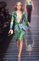 米兰时尚追踪 2000年的服装流行时尚已经不再是简简单单的银色太空服和五、六十年代由先辈们冥思苦想出来的东西。事实上最初的千禧系列服装给人的感觉很像是八十年代的服装风格。新兴资产阶级身着的线条流畅的、臀部设计精巧的瘦腿裤,裁剪得很夸张的夹克衫以及领口敞开的男式衬衫。但80年代服饰的顽皮一面在今天又一次得到了诠释—— “女孩子只是喜欢好玩的服饰”这个主题是T型台上最时兴的主调。