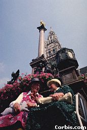 Grand buildings in all styles from Baroque to Modern line streets and plazas, waiting to be photographed. One of the most beautiful, Munich's New Town Hall, stands on Marienplatz. Built between 1867 and 1908, the building looks like something from a fairy tale. The largest musical clock in Germany clings to one of the towers. Each day at 11 a.m. and noon, the clock's doors open and brightly-colored wooden dancers perform as the clock sounds the hour. 各样风格的壮观建筑物,从巴洛克式到现代风味,林立在街道和广场旁,正等着您去拍照。其中最美的建筑物之一「新市政厅」,就伫立在「玛丽安广场」上。这栋建筑物建于西元1867年和1908年之间,看起来简直就像出自神话。德国最大的音乐钟就紧贴着此处的一座高塔上。每天在十一点和正午时刻,时钟的门会打开,色彩鲜艳的木偶舞者就在时钟报时的同时进行着表演。