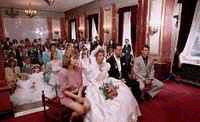 亚美尼亚:人们放飞两只白鸽,以示爱情和幸福。新娘穿着红色丝绸的服装,头戴饰有羽毛的纸翼。人们还可向新娘投掷硬币。