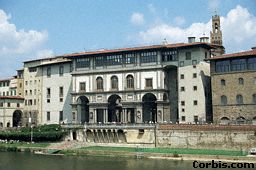A short walk through the narrow streets of Florence brings visitors to the famous Uffizi Gallery. This building dates from 1560 and used to be an office building. (Uffici means office in Italian.) Today it boasts an outstanding art collection. Visitors should be sure to wear comfortable shoes, as exploring the gallery takes many hours. Some of the most famous works in the collection include Botticelli's Primavera and Birth of Venus. 稍作散步一番走过佛罗伦萨狭窄的小巷,游客将来到著名的乌菲齐美术馆。这栋建筑建于1560年间,当年是作为办公之用(乌菲齐在意大利语中是办公室的意思)。今日,它则以其出色的艺术收藏而自豪,游客们一定得穿着舒适的鞋子去参观,因为要一探这个美术馆得花好几个小时的时间。收藏中一些著名的作品包括有波提切利的「春」和「维也纳的诞生」。