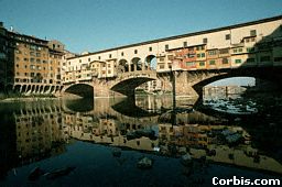 After exiting the Pitti, a right turn brings visitors to one of Florence's famous outdoor sights, the Ponte Vecchio. This bridge over the Arno River has been lined with jewelry shops and goldsmiths since 1593. Those interested in purchasing a few modern treasures may want to shop here. The quality of the craftsmanship is very high-but so are the prices. 离开了彼蒂宫之后,右转便将游客带入佛罗伦萨最著名的戶外风景区维琪奥桥,此桥横跨阿诺河上,桥上自1593年便设有成排的珠宝店和金匠铺子。有兴趣购买一些现代宝物的人,或许可以在这儿采购一番。这儿的技术品质相当的高,不过价钱也是很高的。
