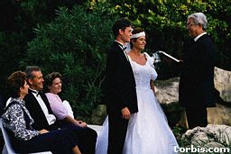 最后就是婚礼了,虽然大多的婚礼仍沿袭长久以来的传统,但是美国人的个人主义仍有其空间,例如,通常婚礼的地点是在教堂,但是有些人却是到戶外的风景区结婚,有些人甚至是跳伞或骑马结婚!双方可能邀请上百人或者只是一些熟朋友,婚礼的顏色风格,布置和音乐都由他们自己决定,但有些事是不太会变的;新娘通常都穿著美丽的白色结婚礼服,按照传统她必须穿的衣服上包括了:一些旧的,一些新的,一些借来的,及一些蓝色的东西。新郎则穿着正式的西装或燕尾晚礼服,几位熟朋友参加婚礼并协助帮忙,包括了伴郎和伴娘。