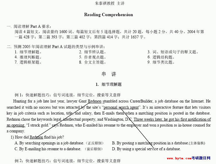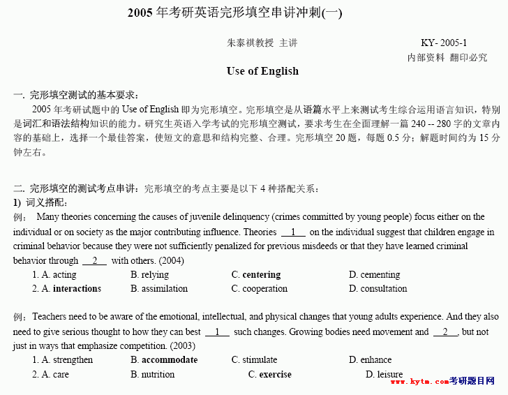 2005年英语冲刺讲义朱泰琪教授第1卷(目的:总结归纳解题技巧高分要领命题思路)
