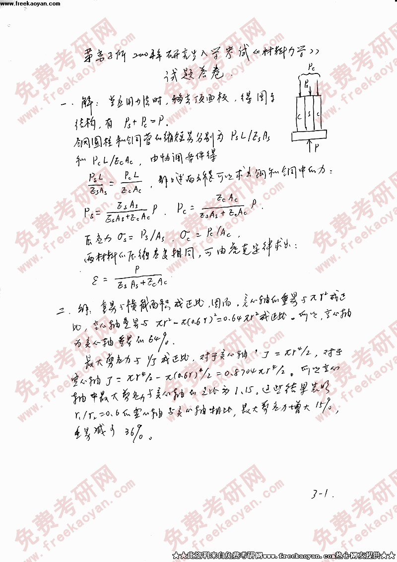 中国科学技术大学2004年硕士研究生入学考试材料力学答案