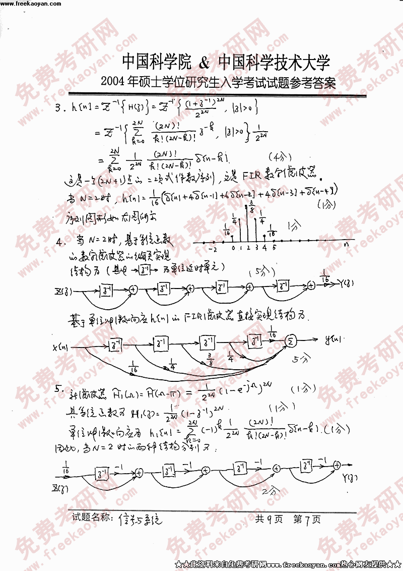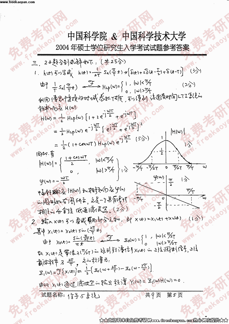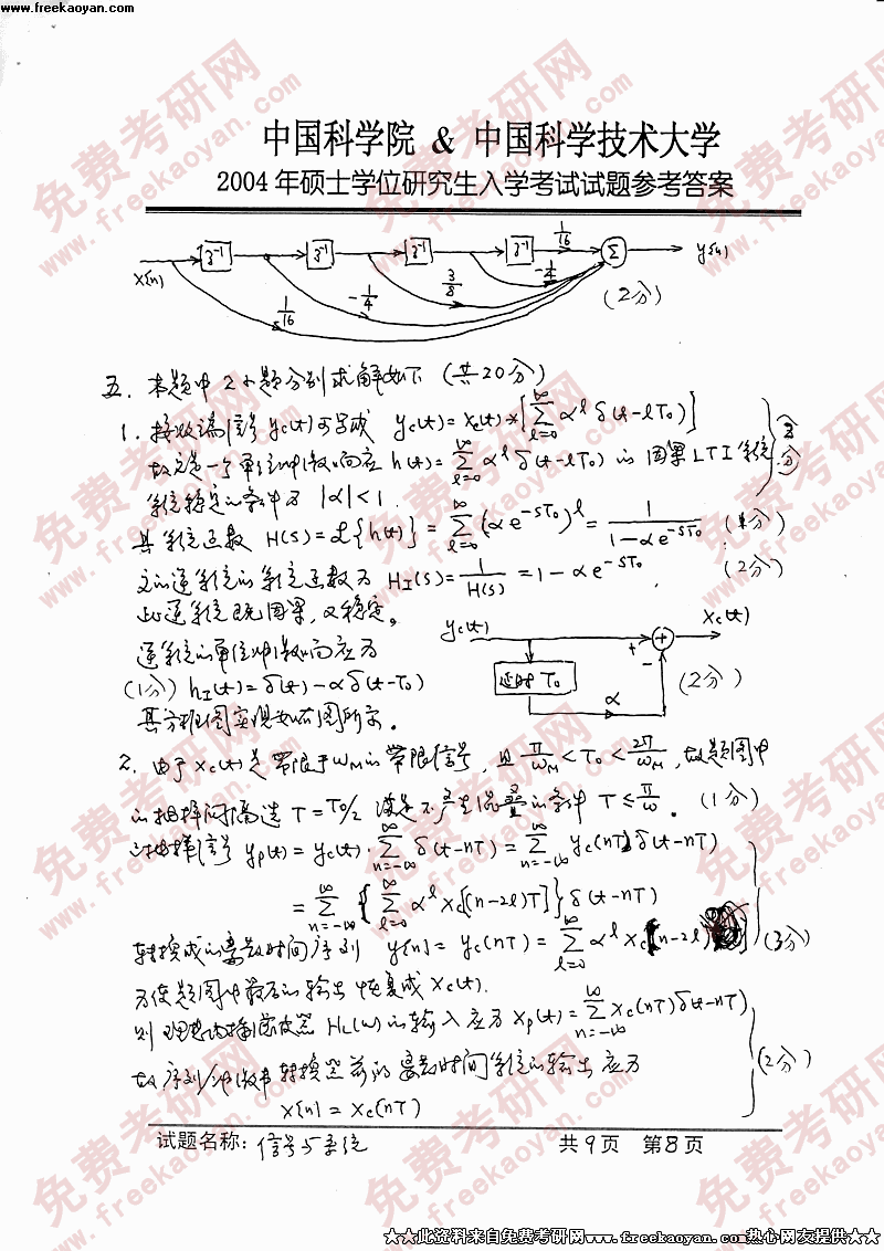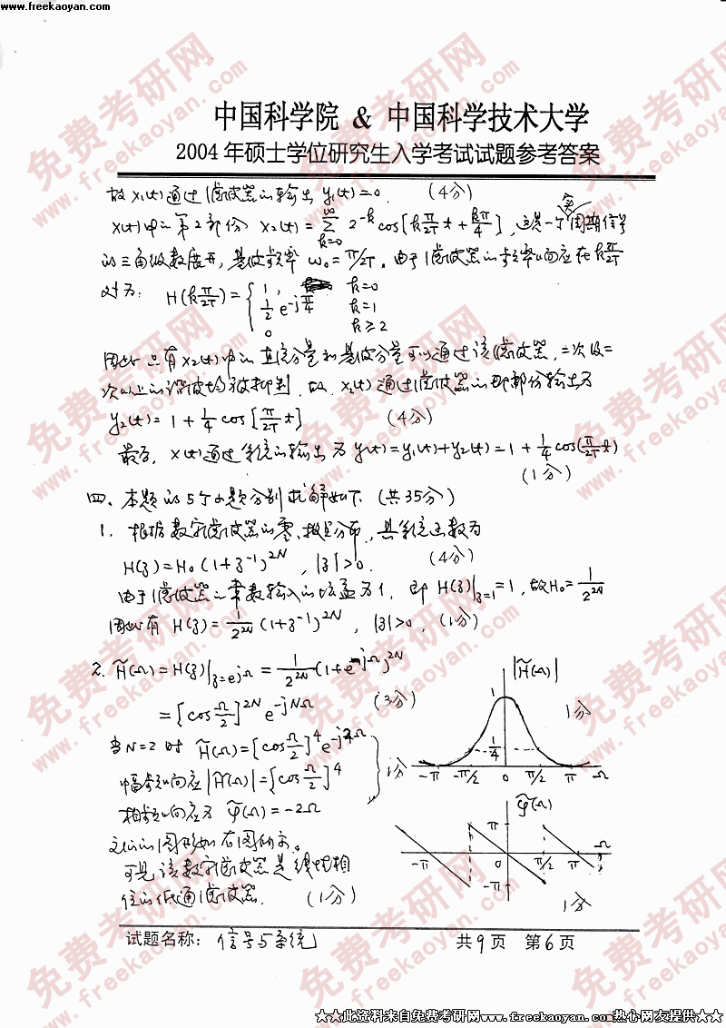 中国科学技术大学2004年硕士研究生入学考试信号与系统答案