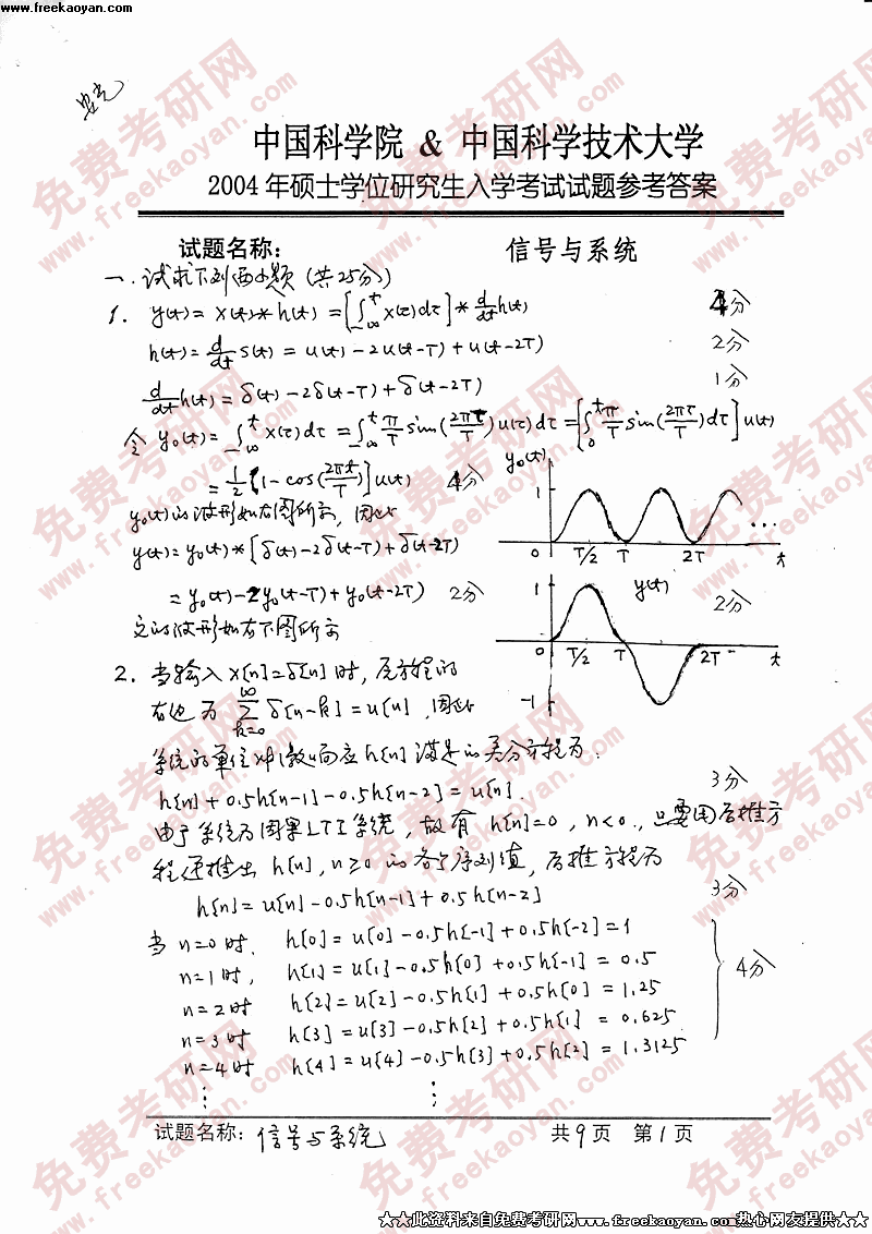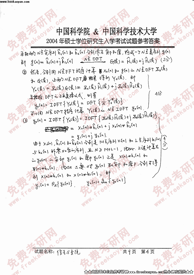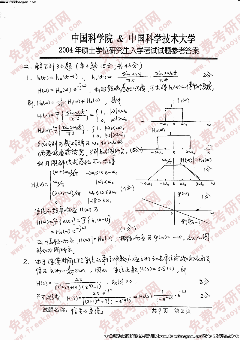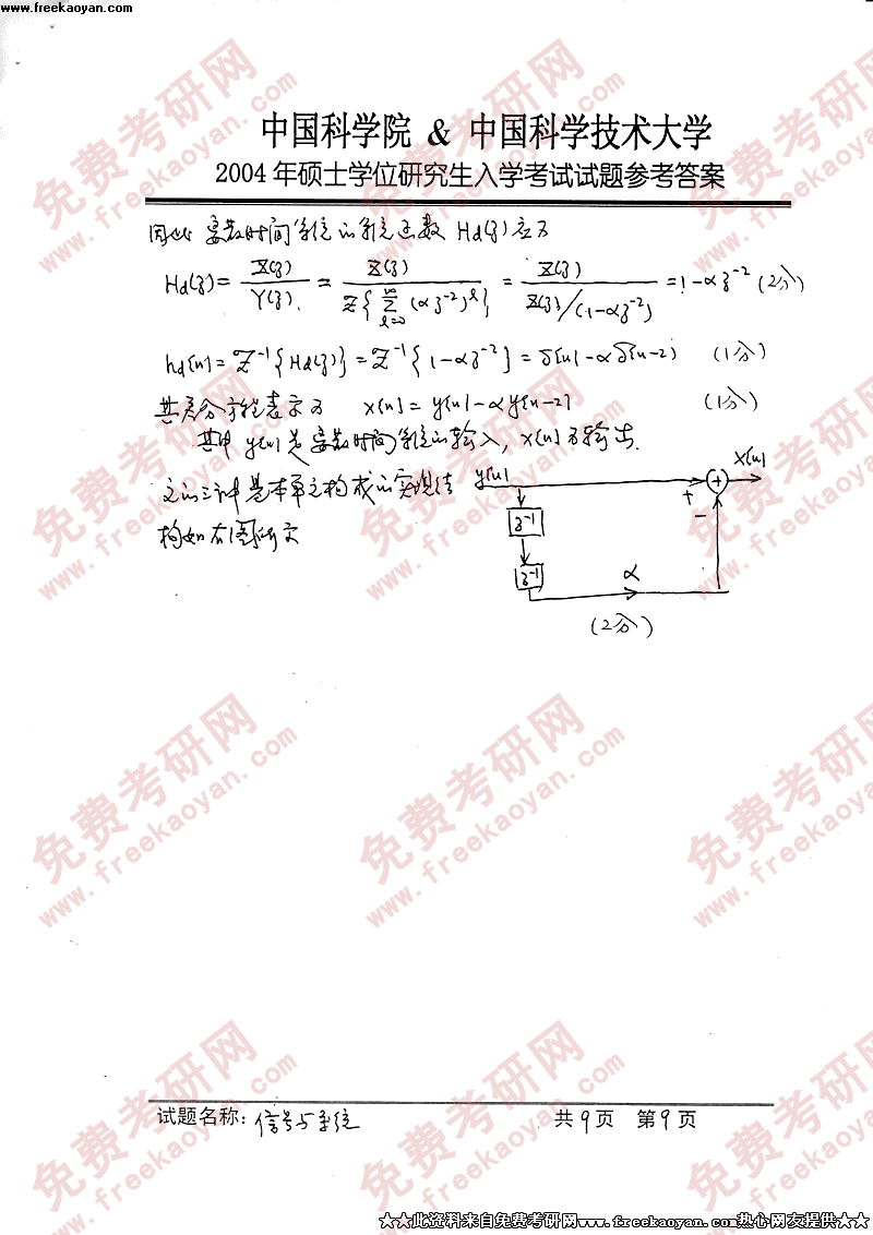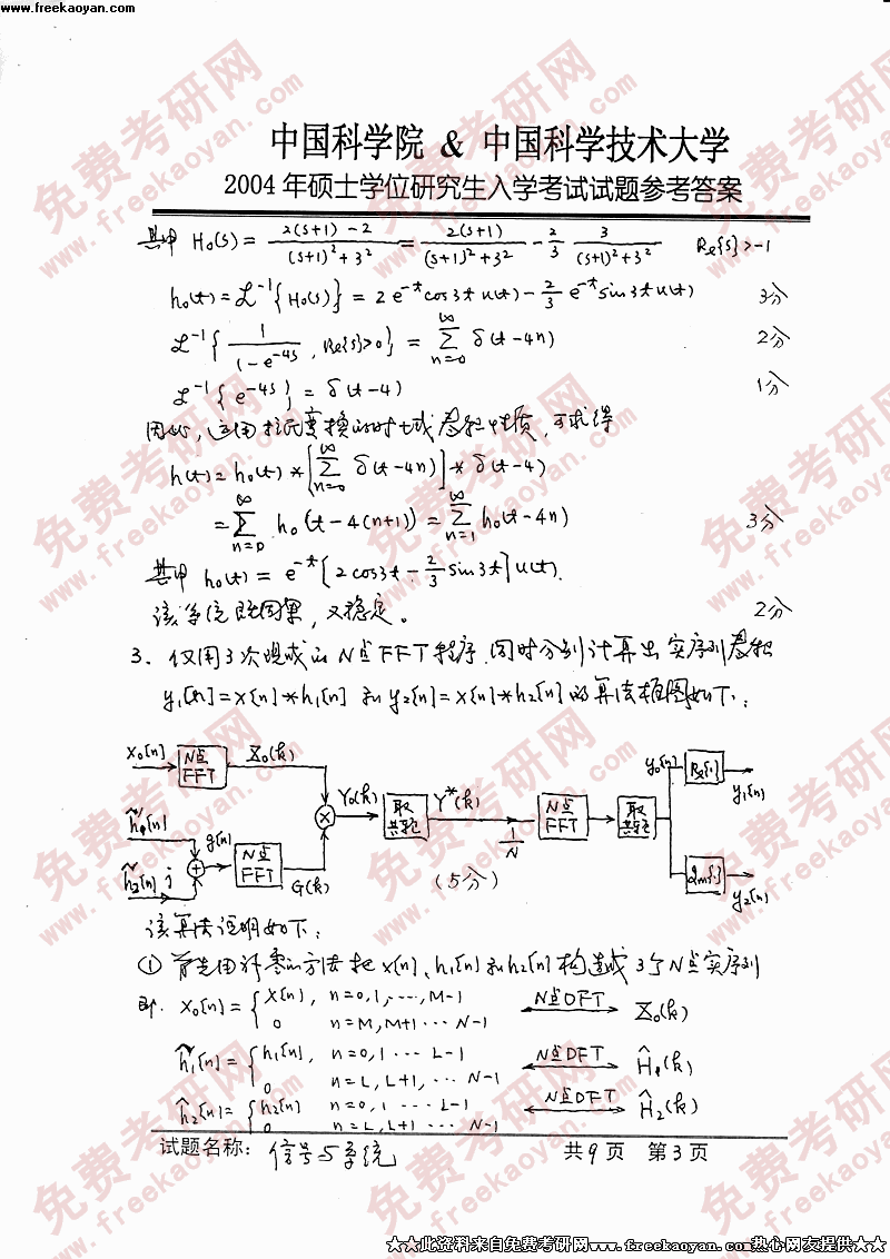 中国科学技术大学2004年硕士研究生入学考试信号与系统答案