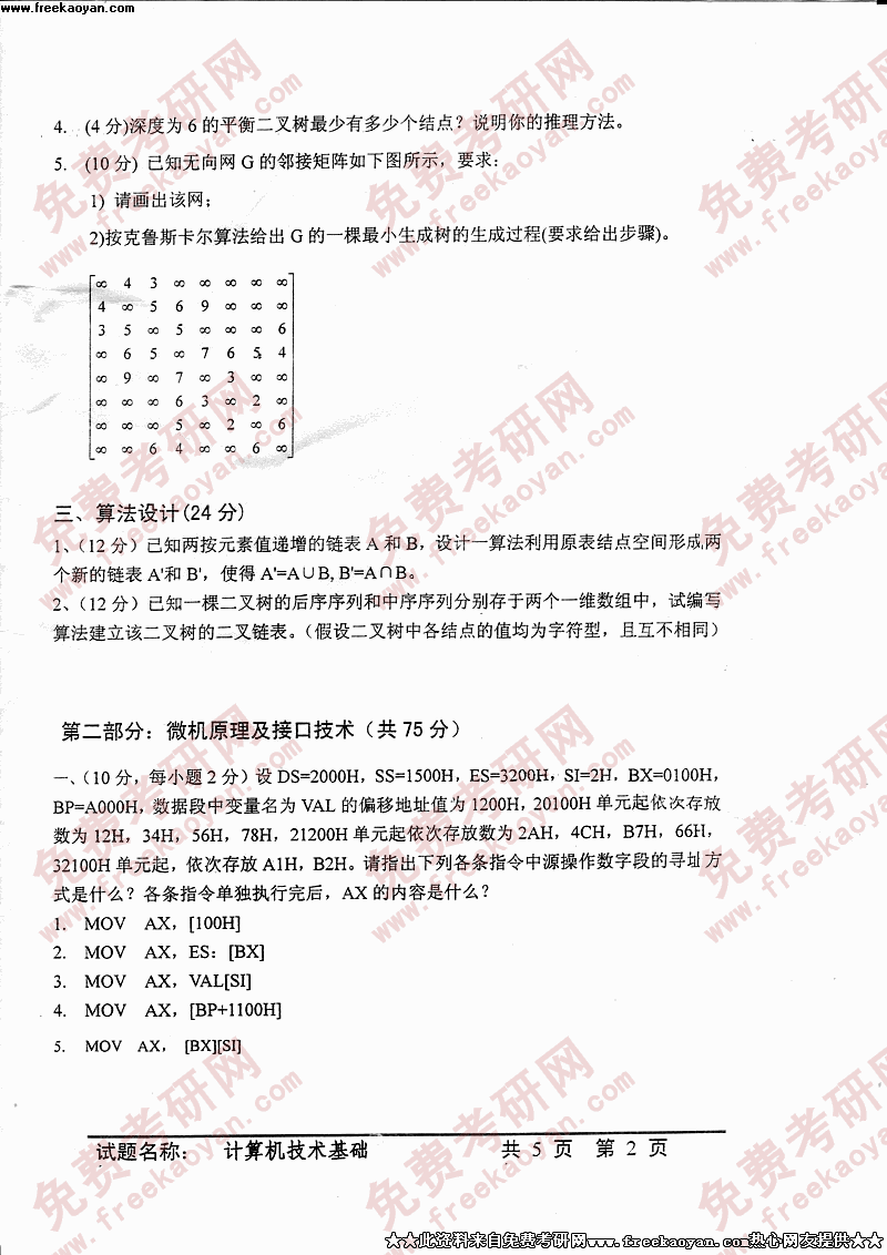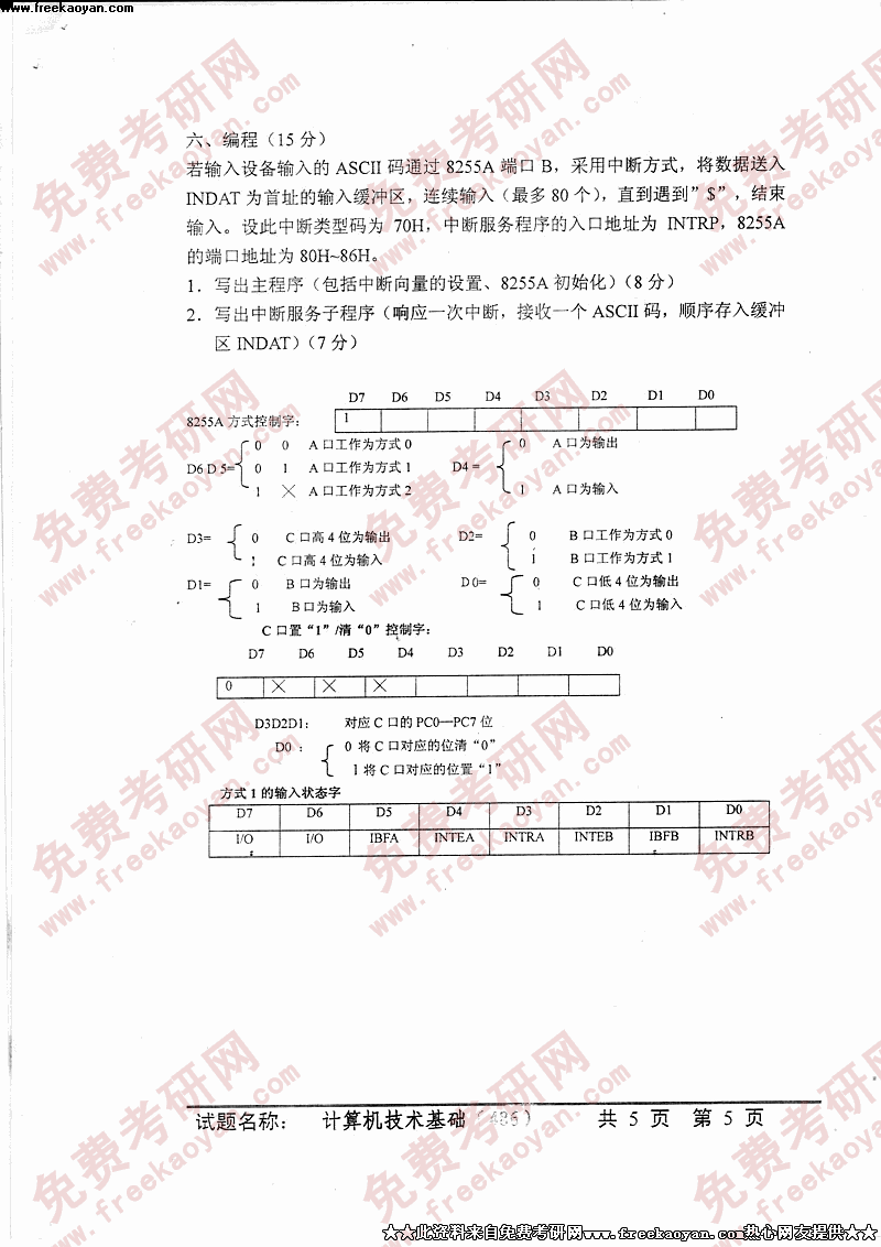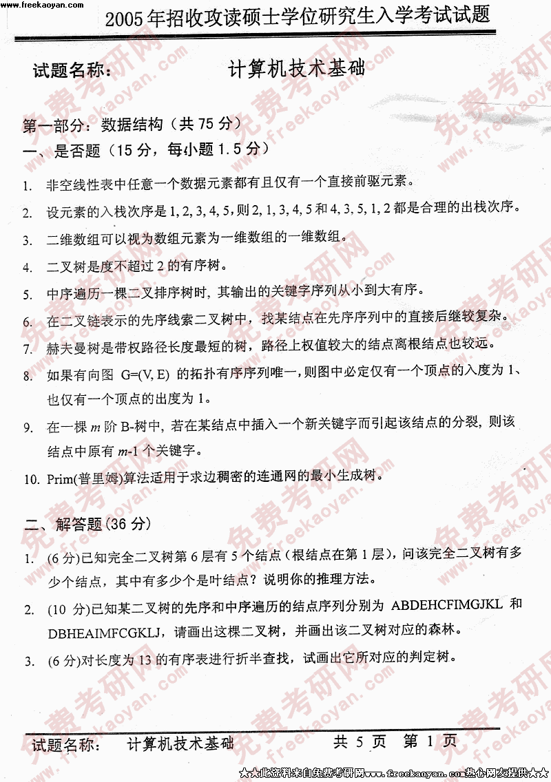 中国科学技术大学2005年硕士研究生入学考试计算机技术基础