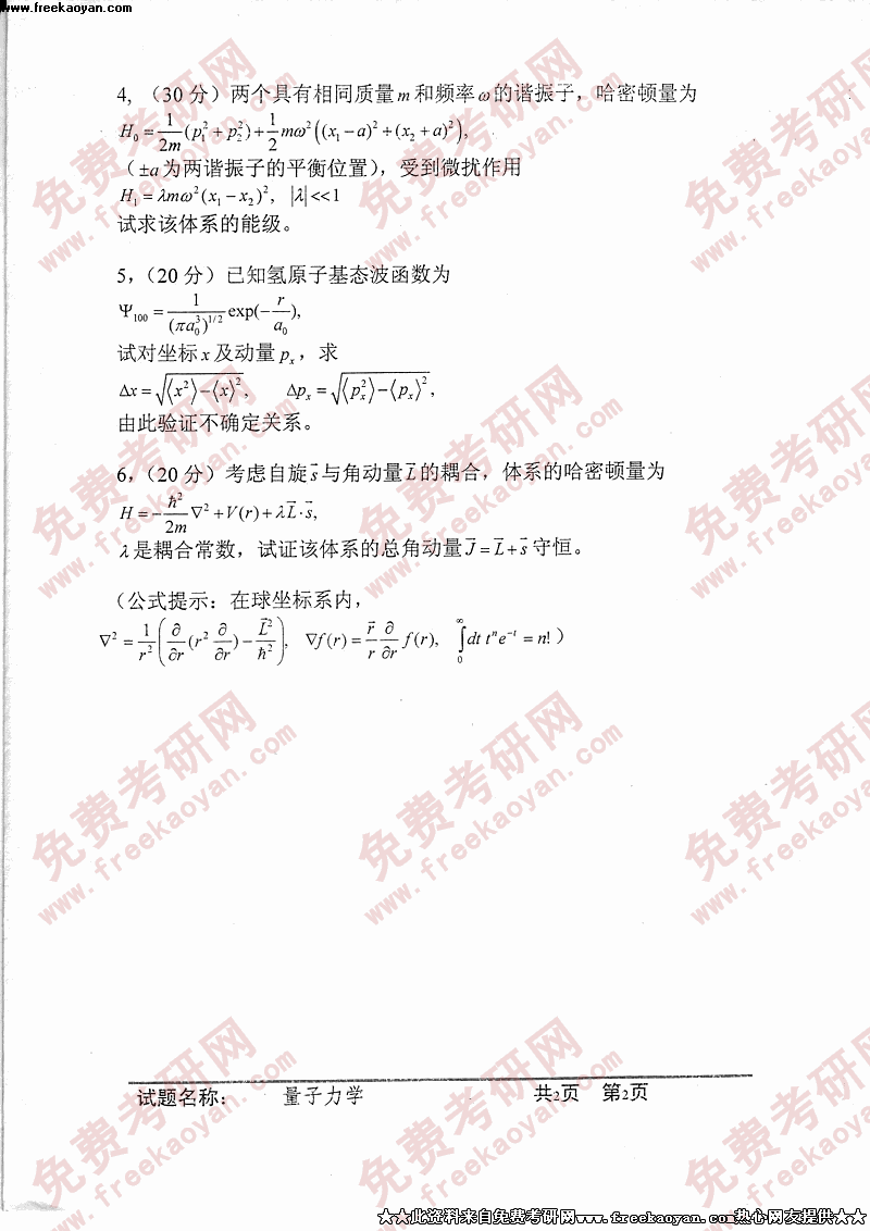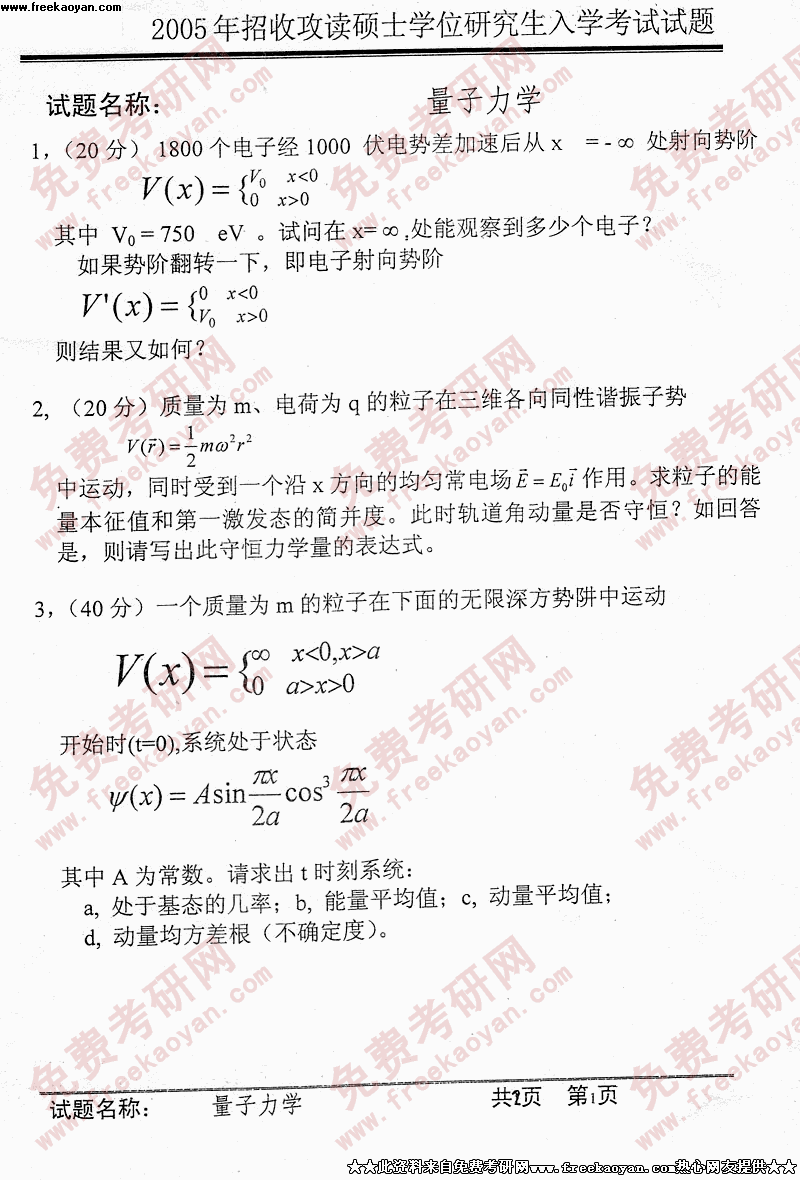 中国科学技术大学2005年硕士研究生入学考试量子力学