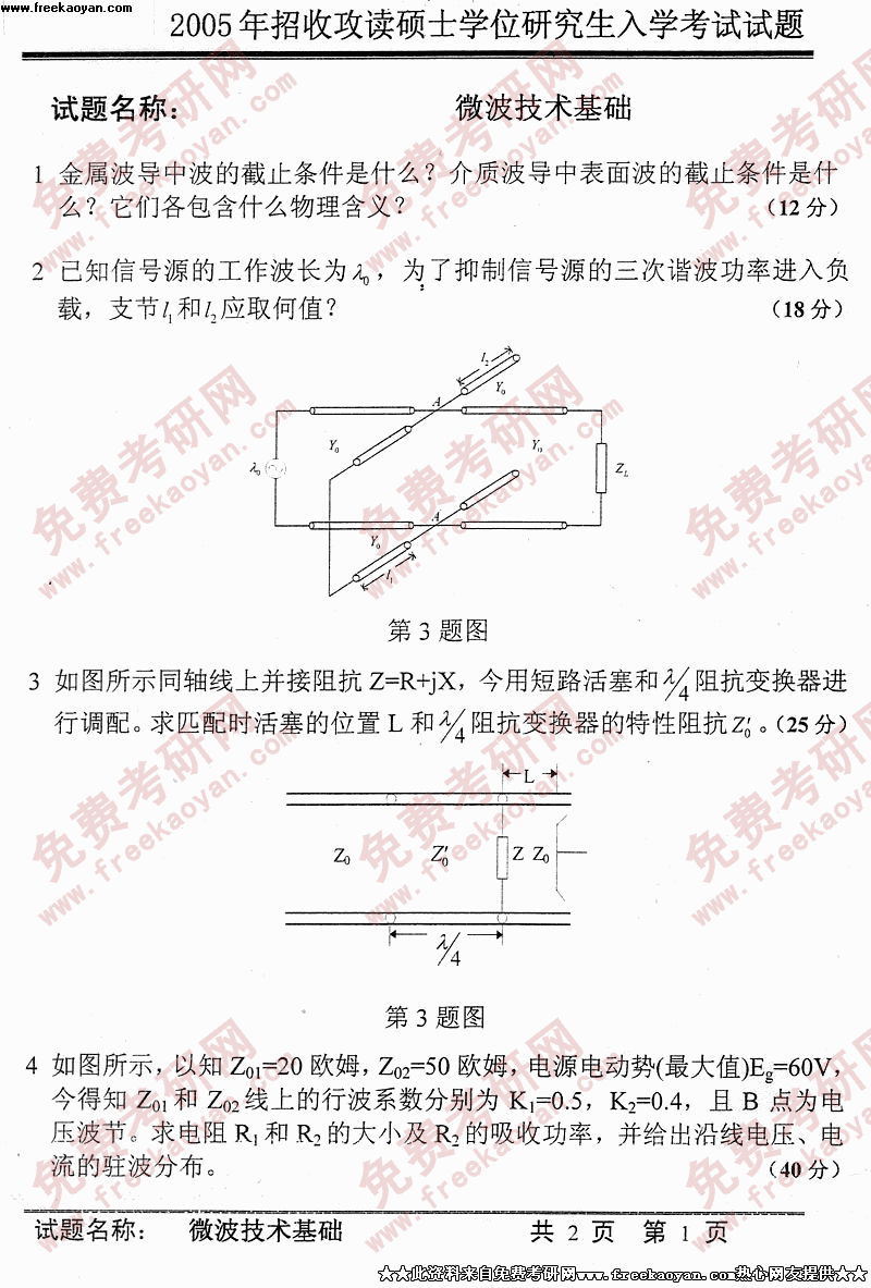 中国科学技术大学2005年硕士研究生入学考试微波技术基础