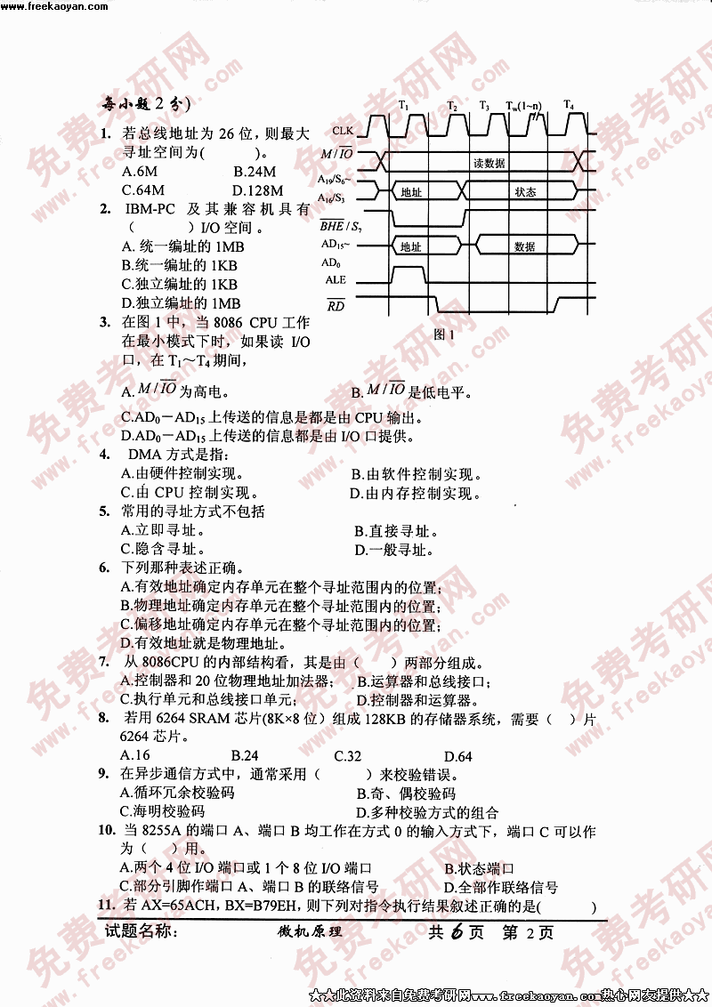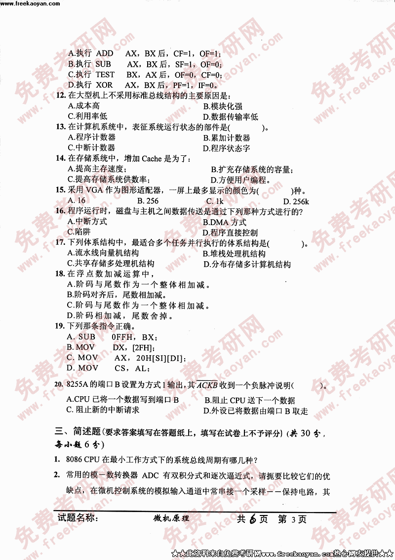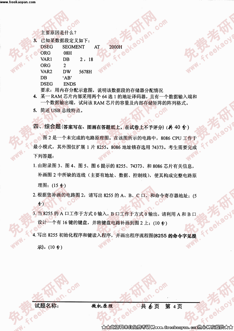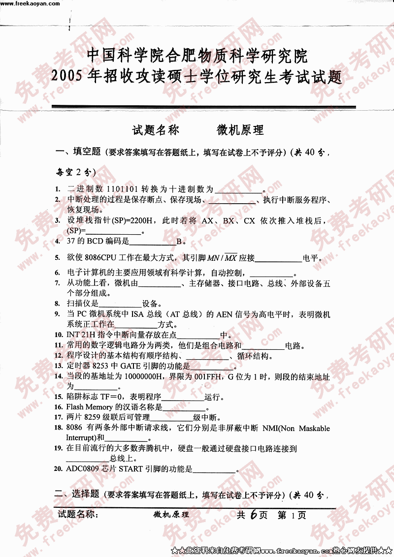 中国科学技术大学2005年硕士研究生入学考试微机原理