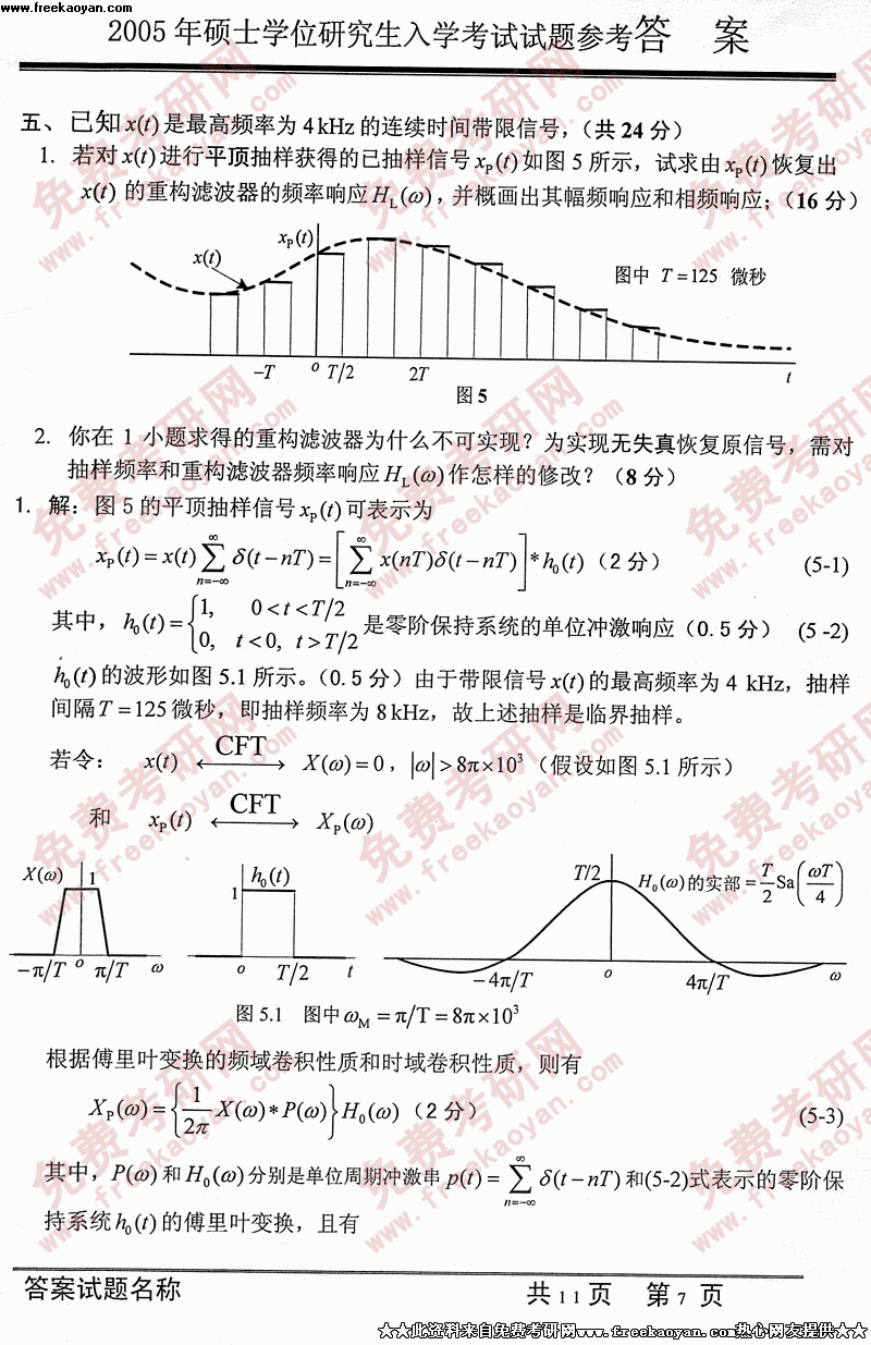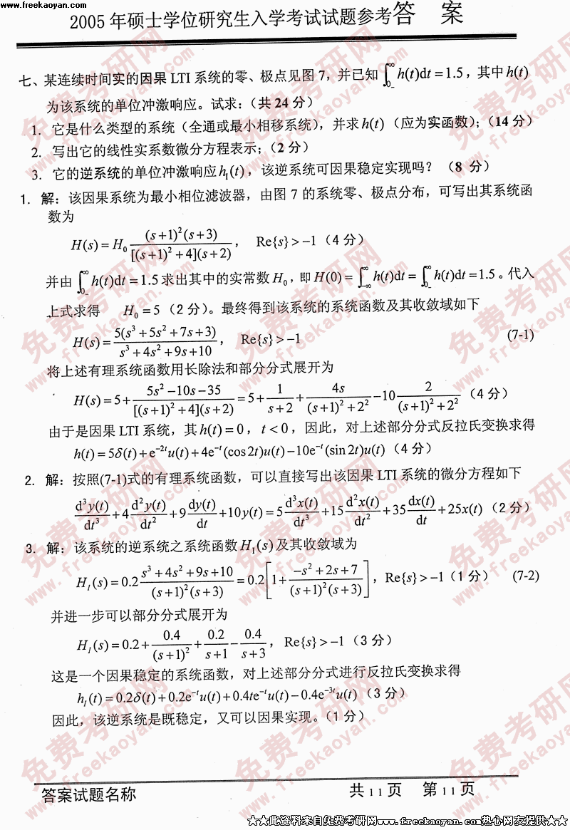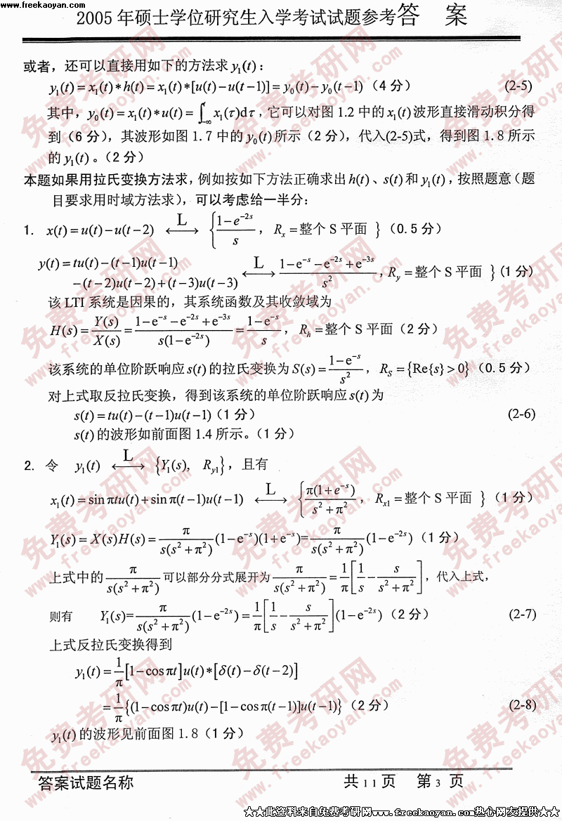 中国科学技术大学2005年硕士研究生入学考试信号与系统答案