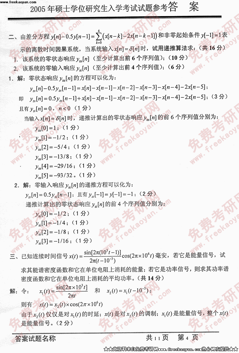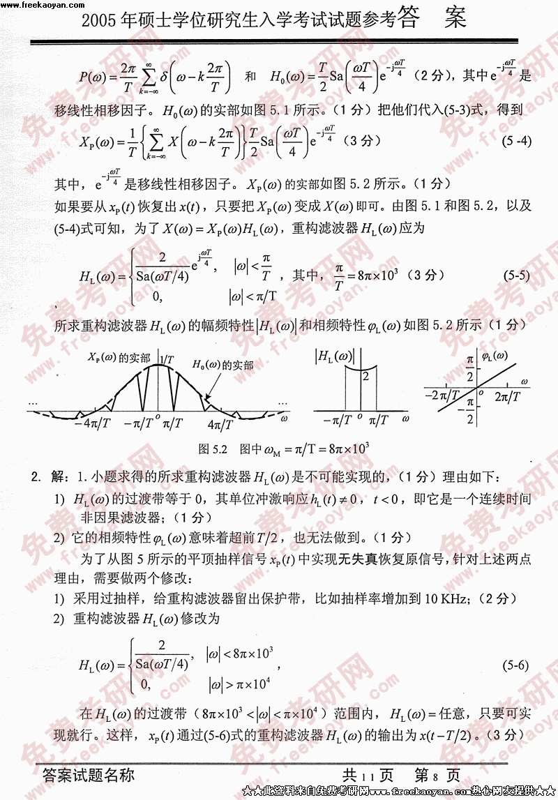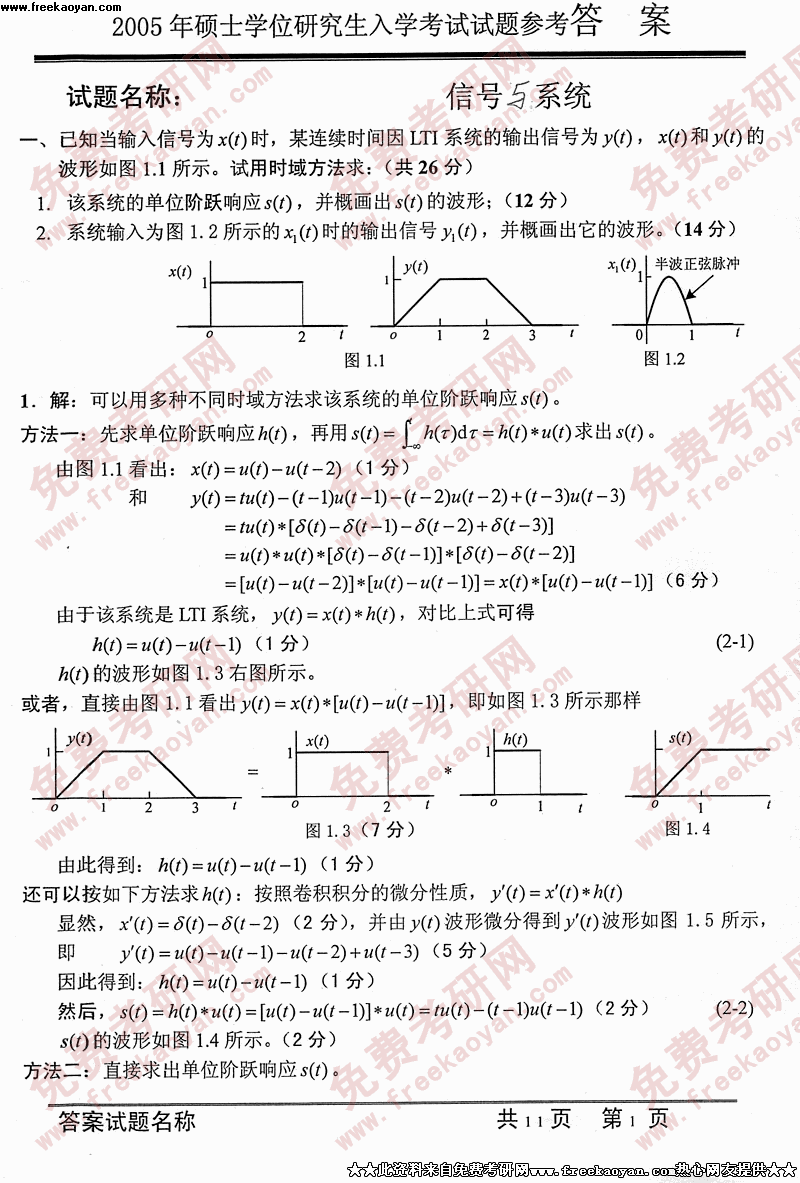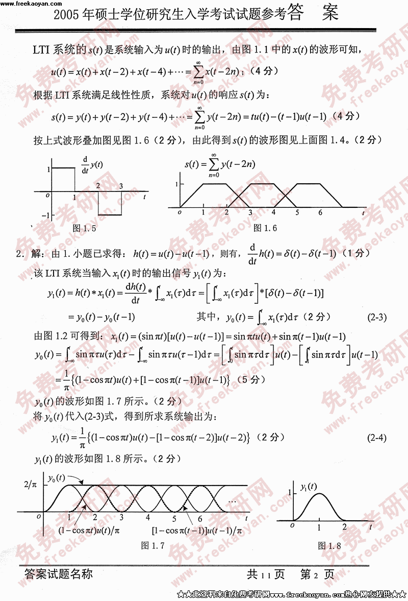 中国科学技术大学2005年硕士研究生入学考试信号与系统答案