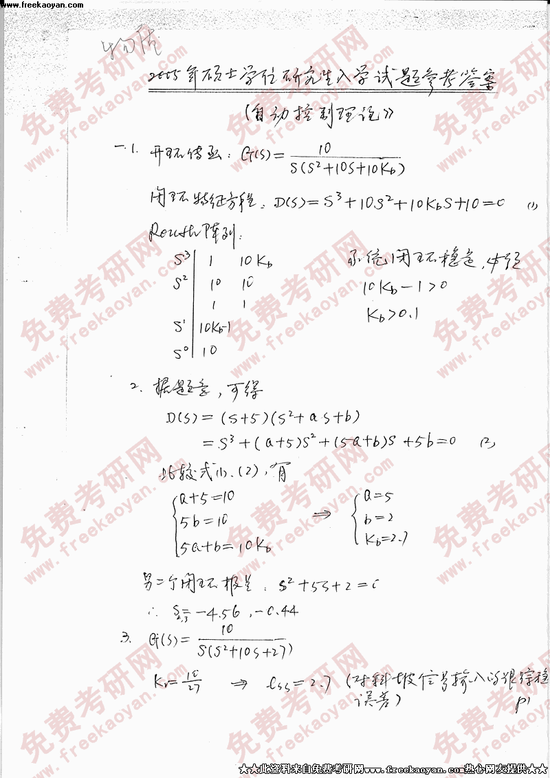 中国科学技术大学2005年硕士研究生入学考试自动控制理论答案