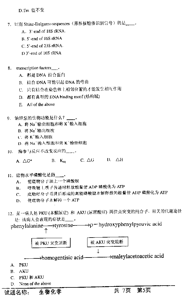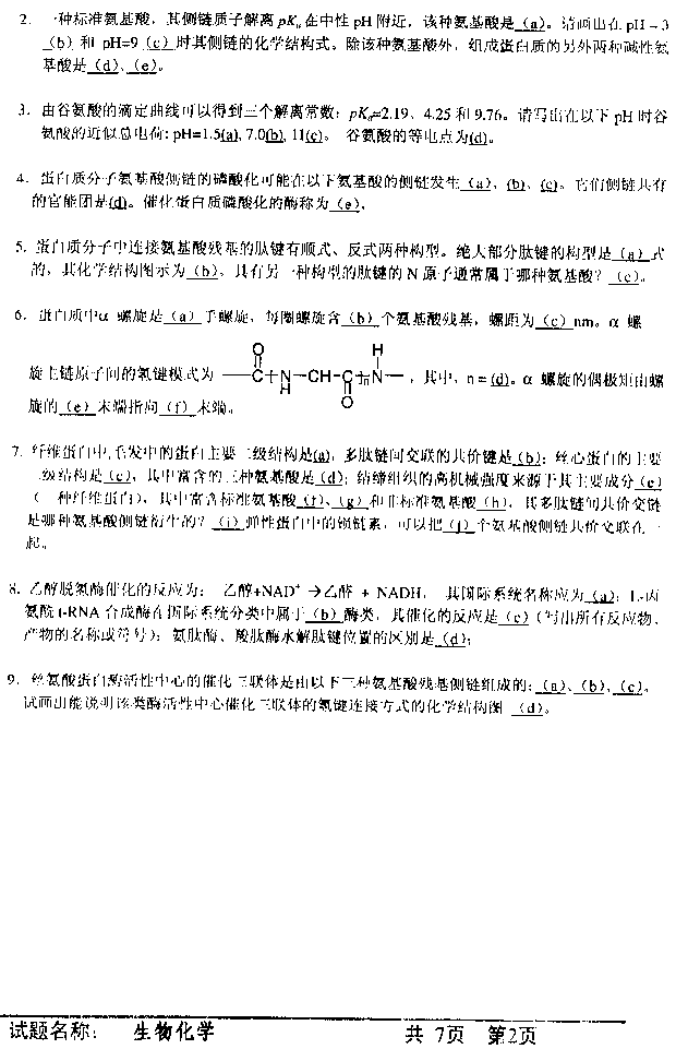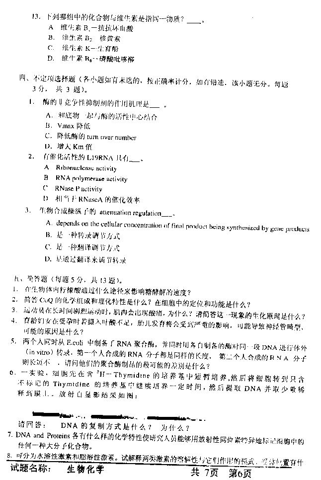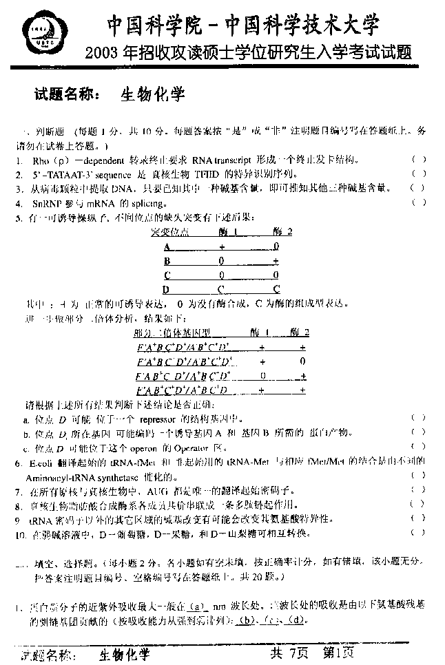 中国科学技术大学2003年硕士研究生入学考试生物化学