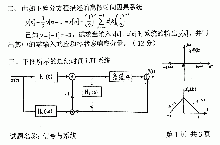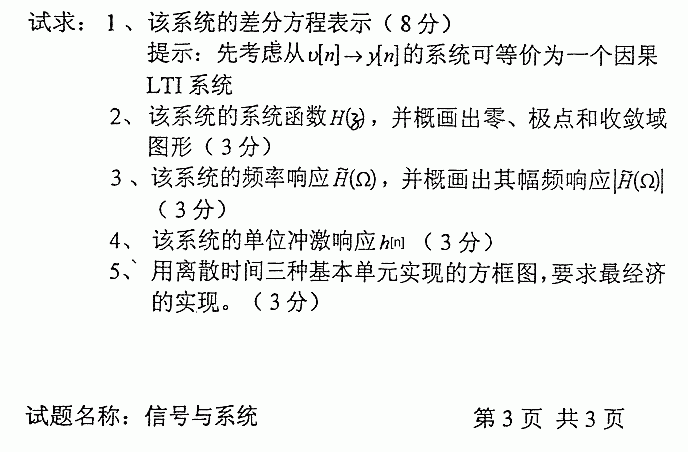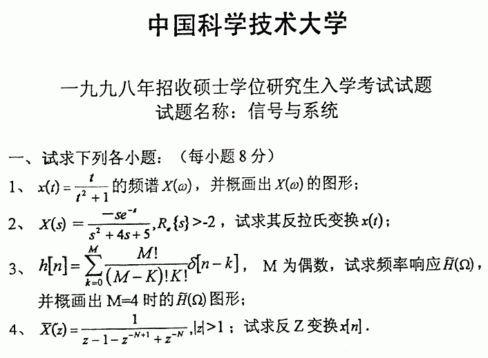 中国科学技术大学1998年硕士研究生入学考试信号与系统