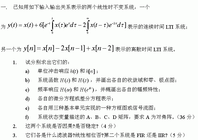 中国科学技术大学1997年硕士研究生入学考试信号与系统