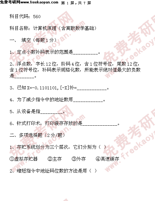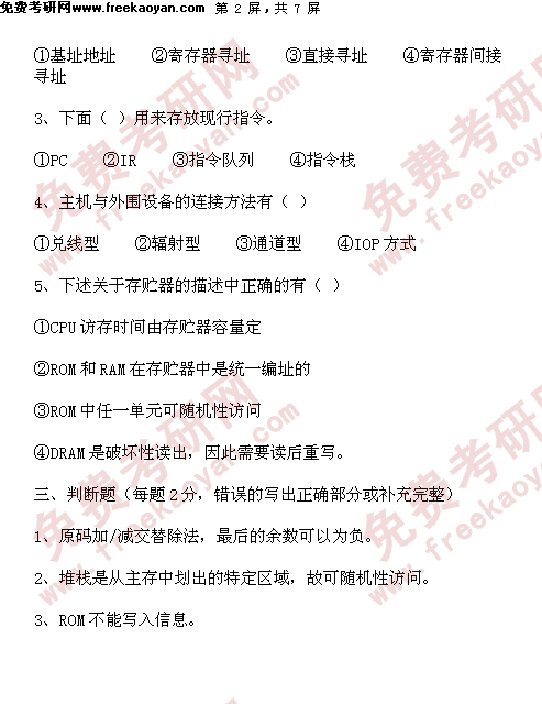 重庆大学2000年硕士研究生入学考试计算机原理(含离散数学基础)