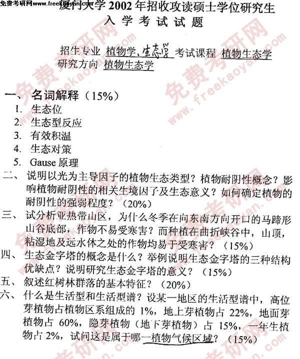 厦门大学2001年硕士研究生入学考试阅读理解及语言学、英美文学基础知识