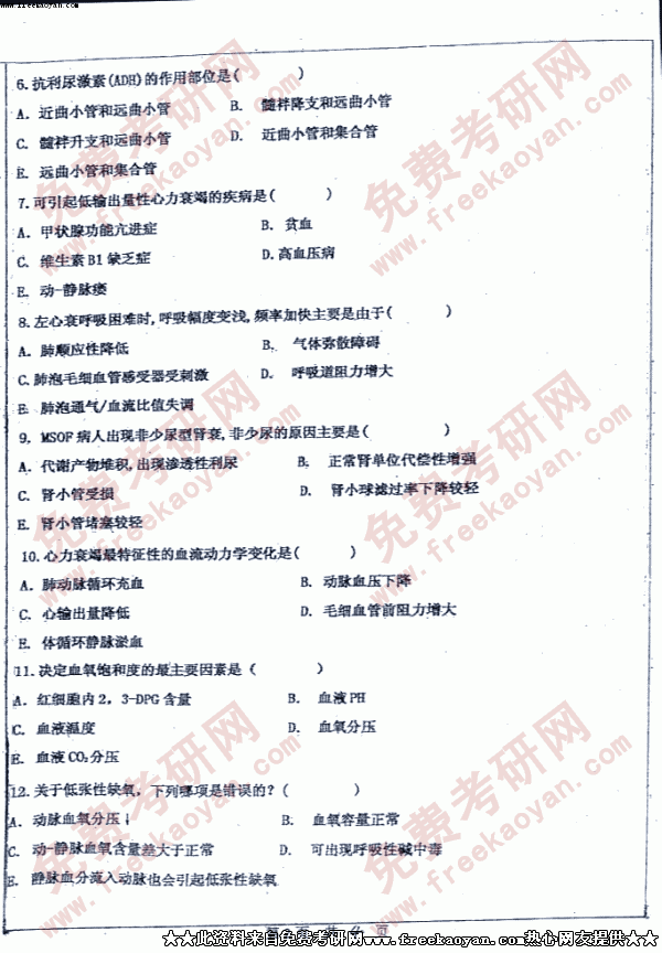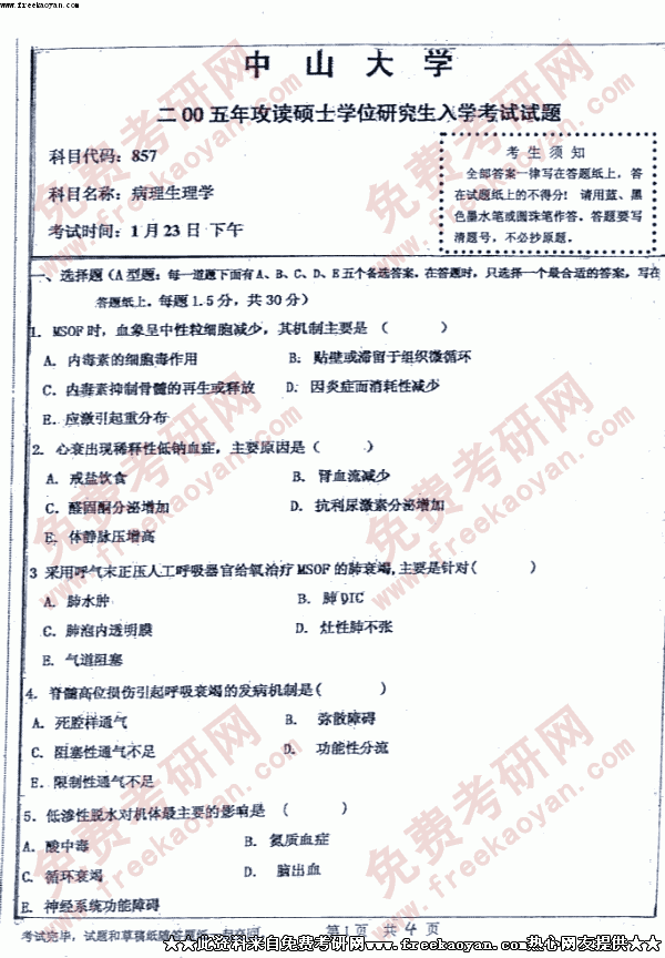 中山大学2001年硕士研究生入学考试物理化学(不含结构化学)有答案