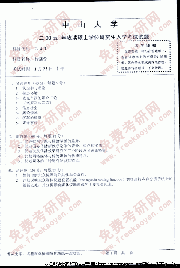 中山大学2005年硕士研究生入学考试城市地理与规划原理