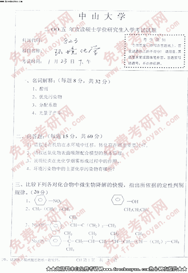 中山大学2005年硕士研究生入学考试汉语言文字学基础