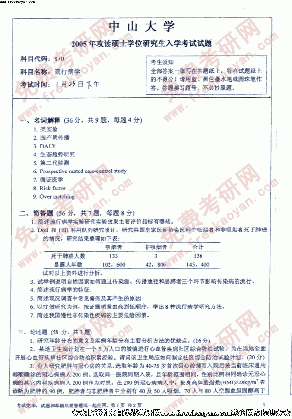 中山大学2005年硕士研究生入学考试口腔组织病理学