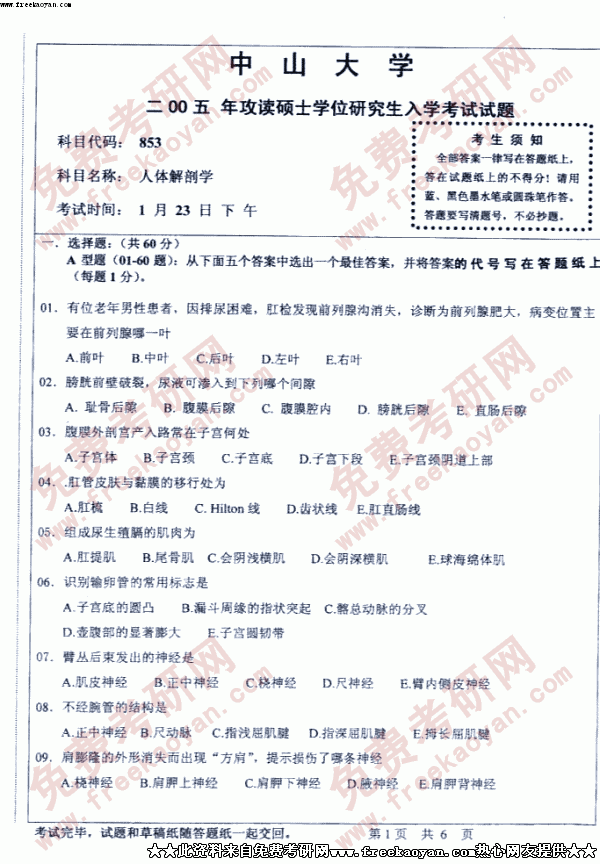 中山大学2005年硕士研究生入学考试区域分析与规划