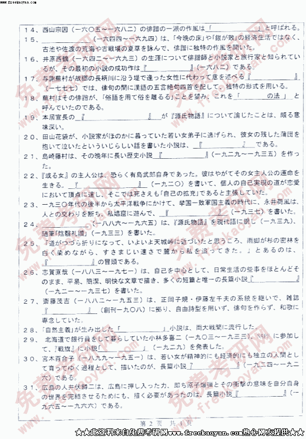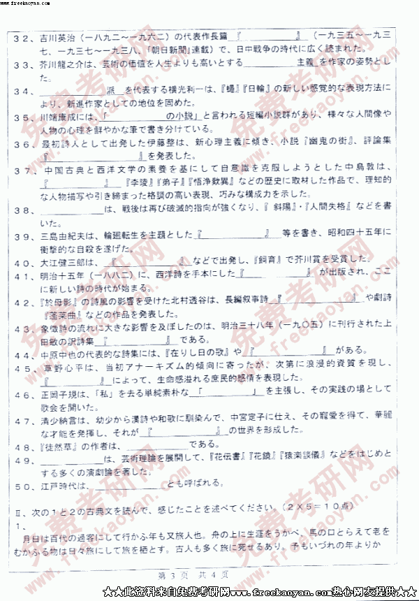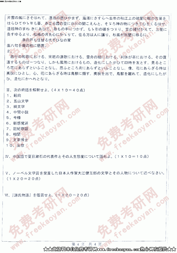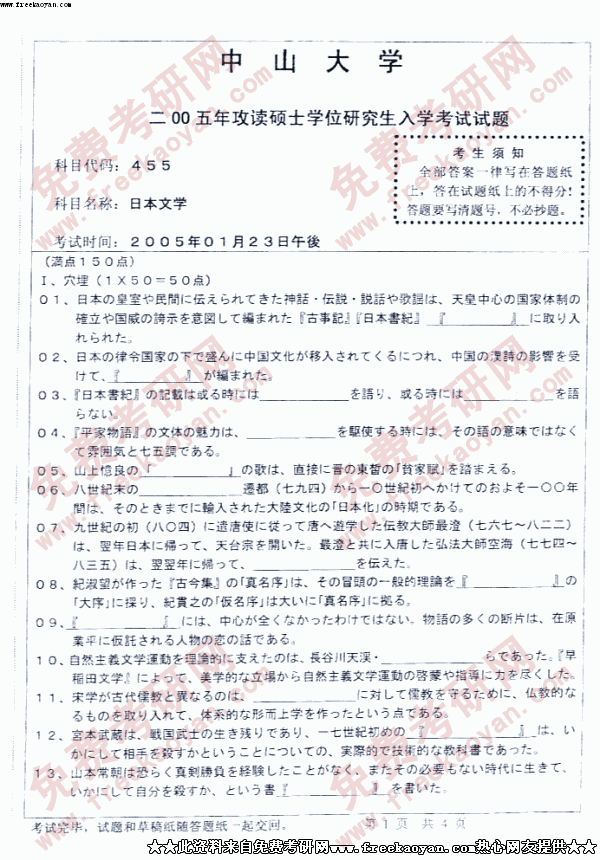 中山大学2005年硕士研究生入学考试日本文学