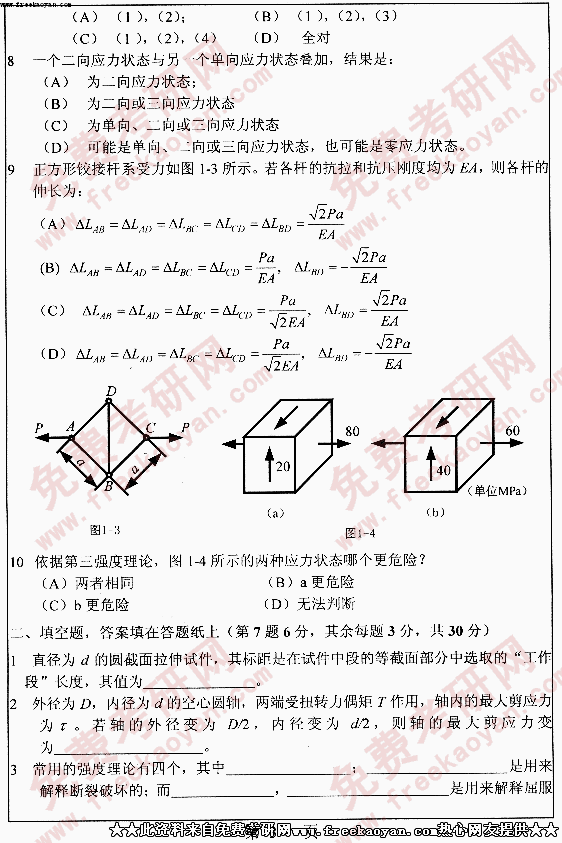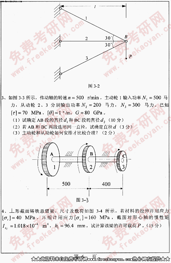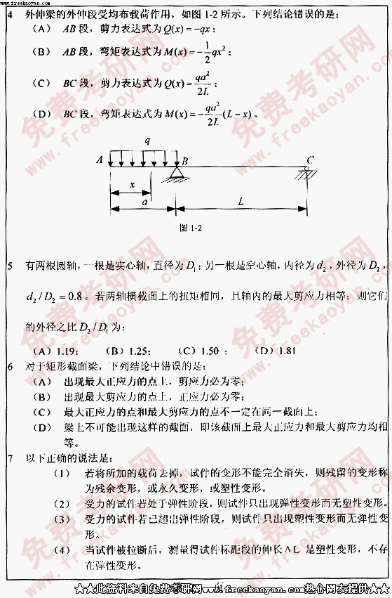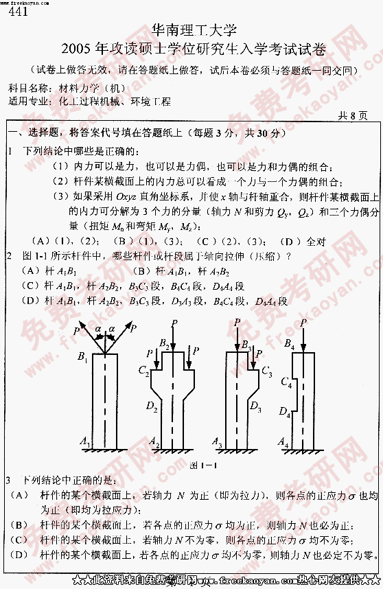 华南理工大学2005年硕士研究生入学考试材料力学(机)