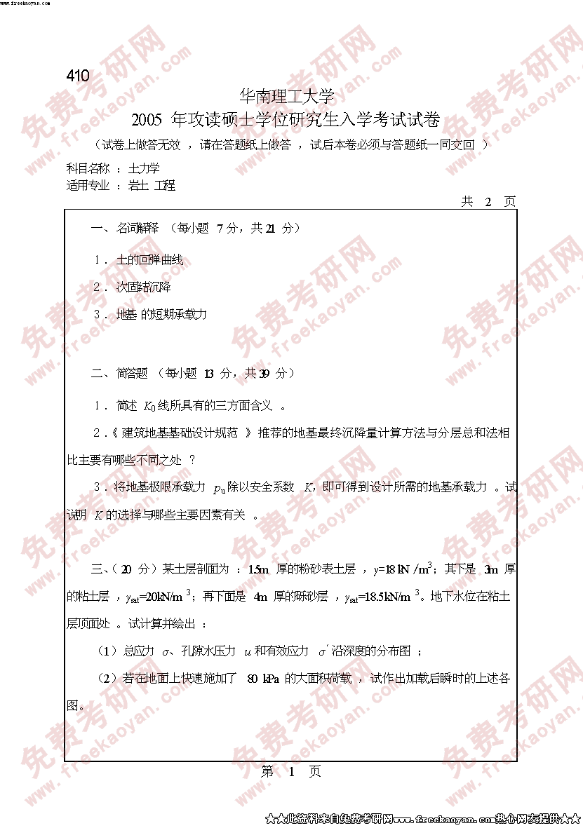 华南理工大学2005年硕士研究生入学考试食品化学含食品分析