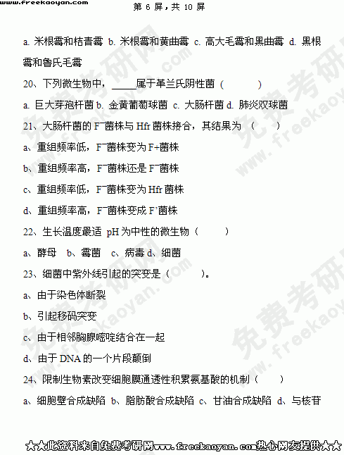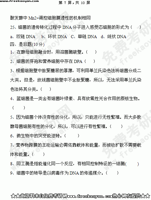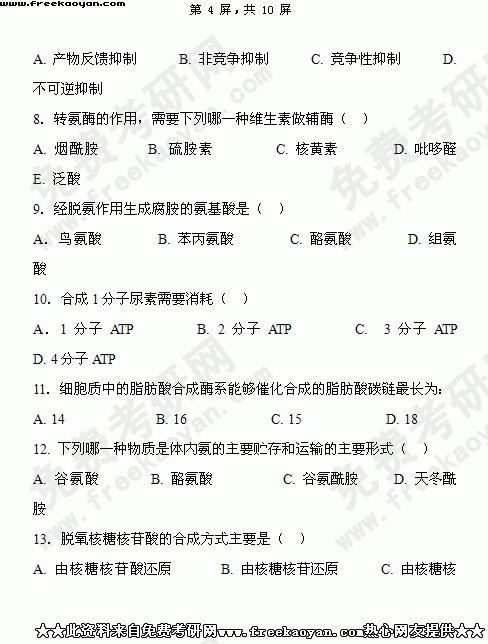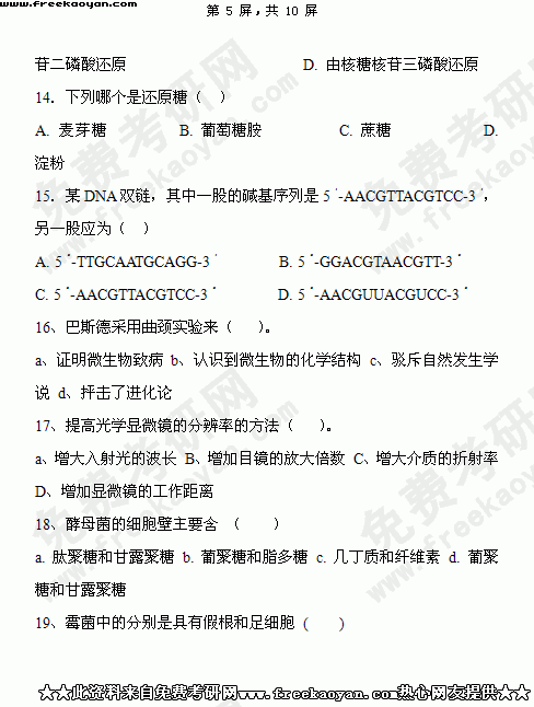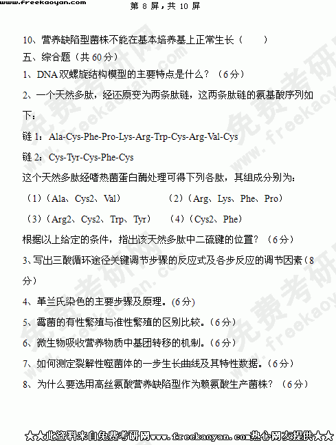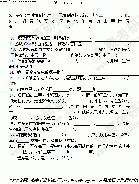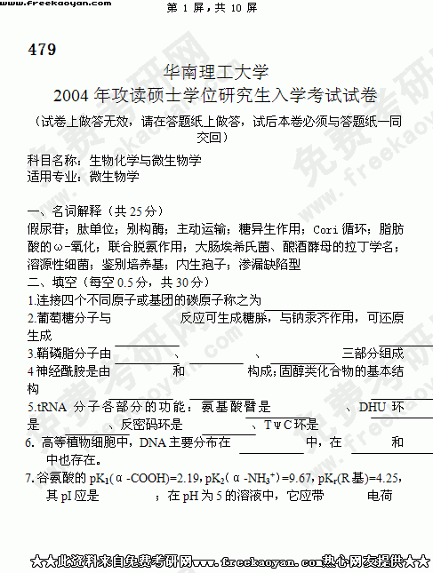 华南理工大学2004年硕士研究生入学考试生物化学与微生物学