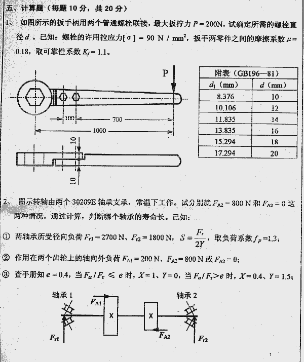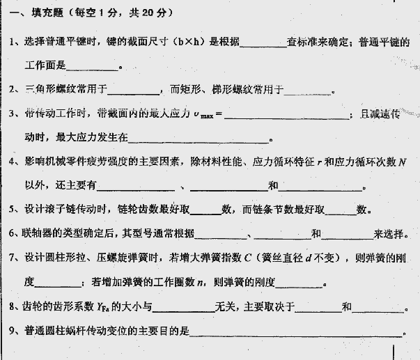 华中科技大学2000年硕士研究生入学考试机械设计
