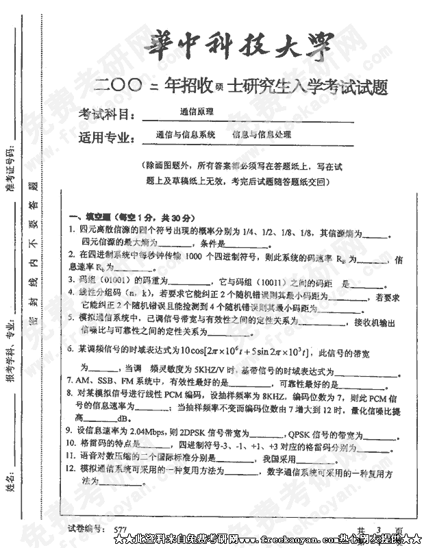 华中科技大学考研专业课试卷