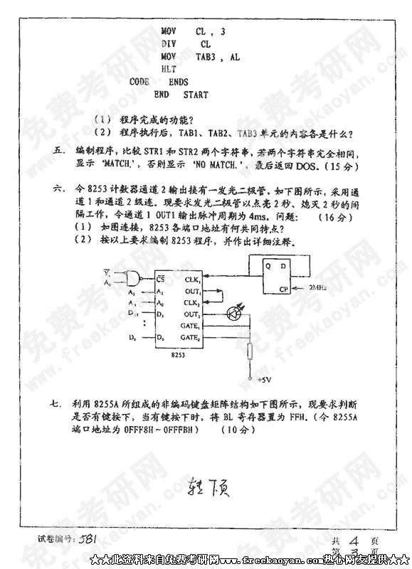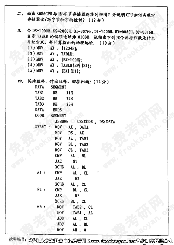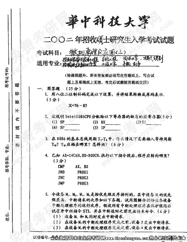 华中科技大学2002年硕士研究生入学考试微机原理及应用(三)
