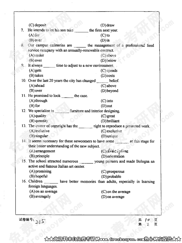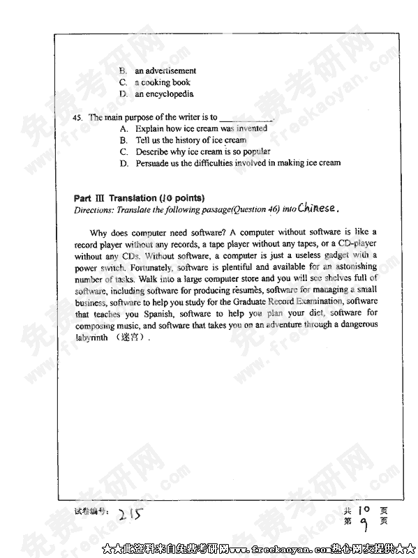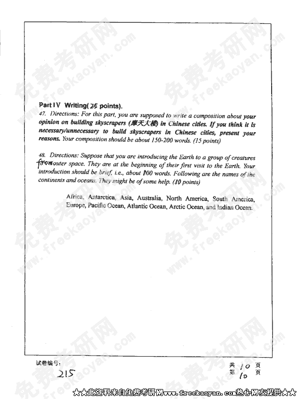 来自免费考研网每个热心网友无偿提供