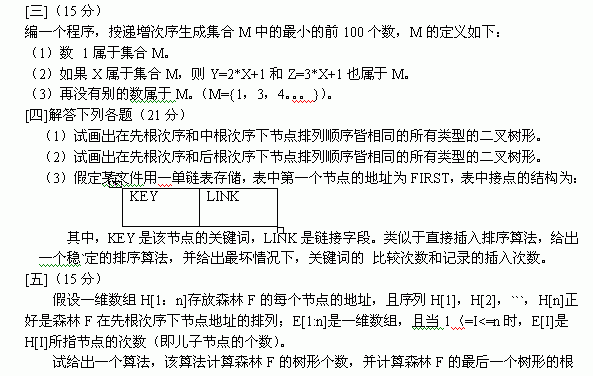吉林大学1995年硕士研究生入学考试计算机综合数据结构