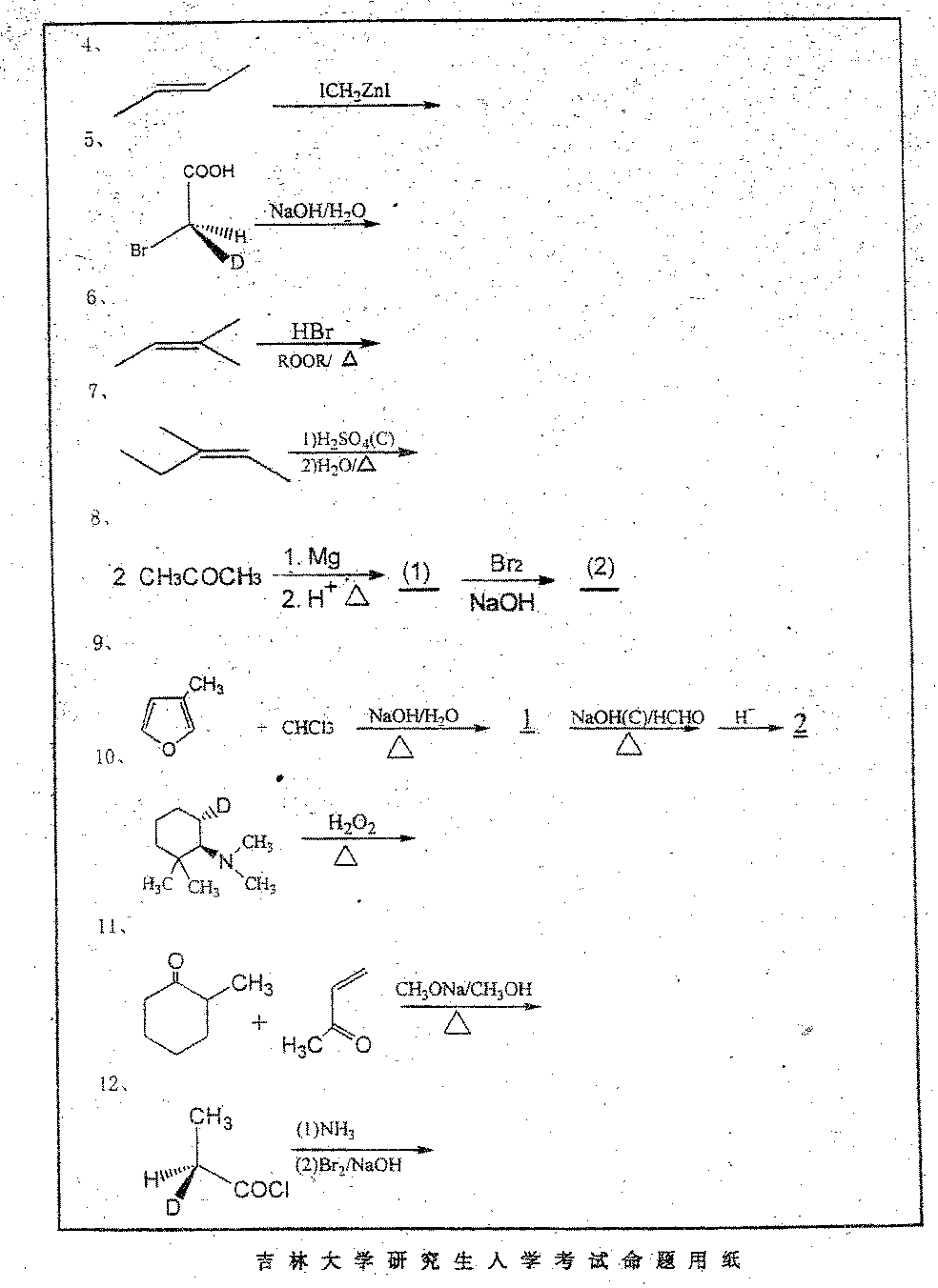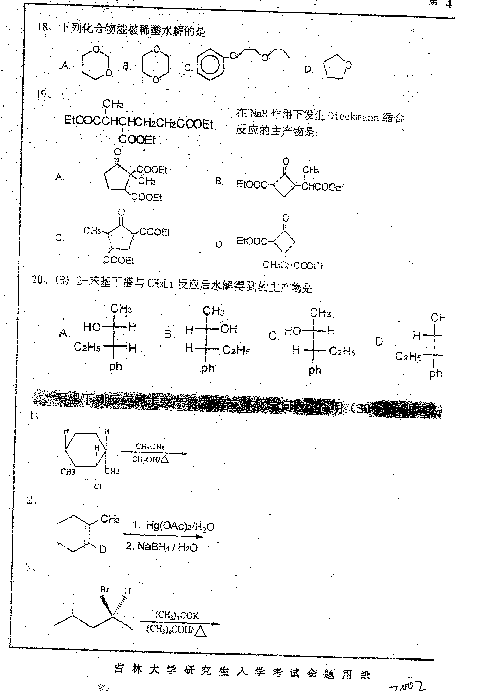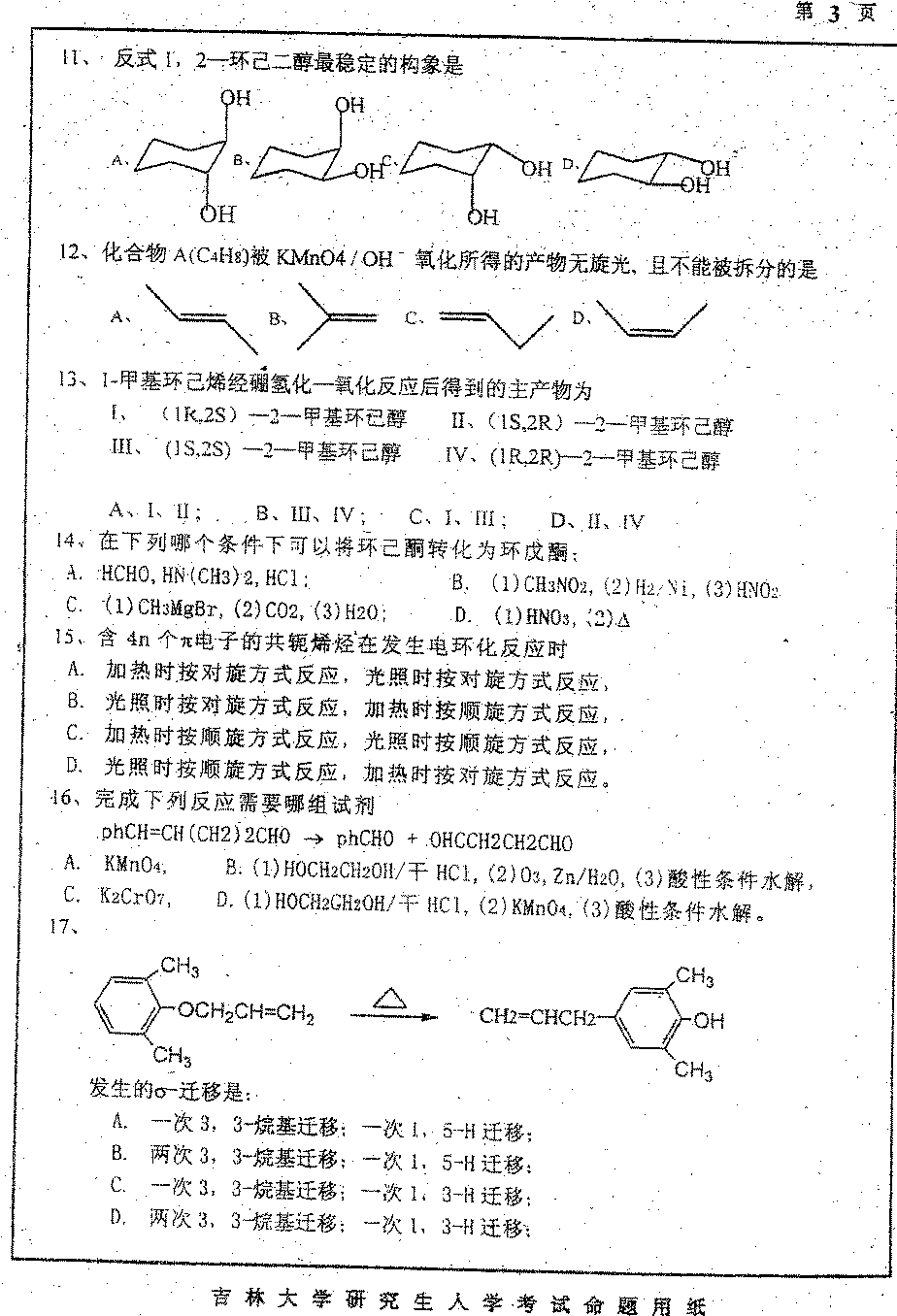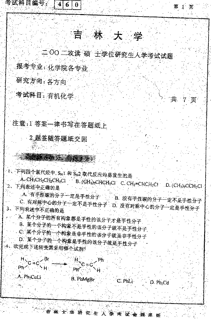 吉林大学2002年硕士研究生入学考试有机化学