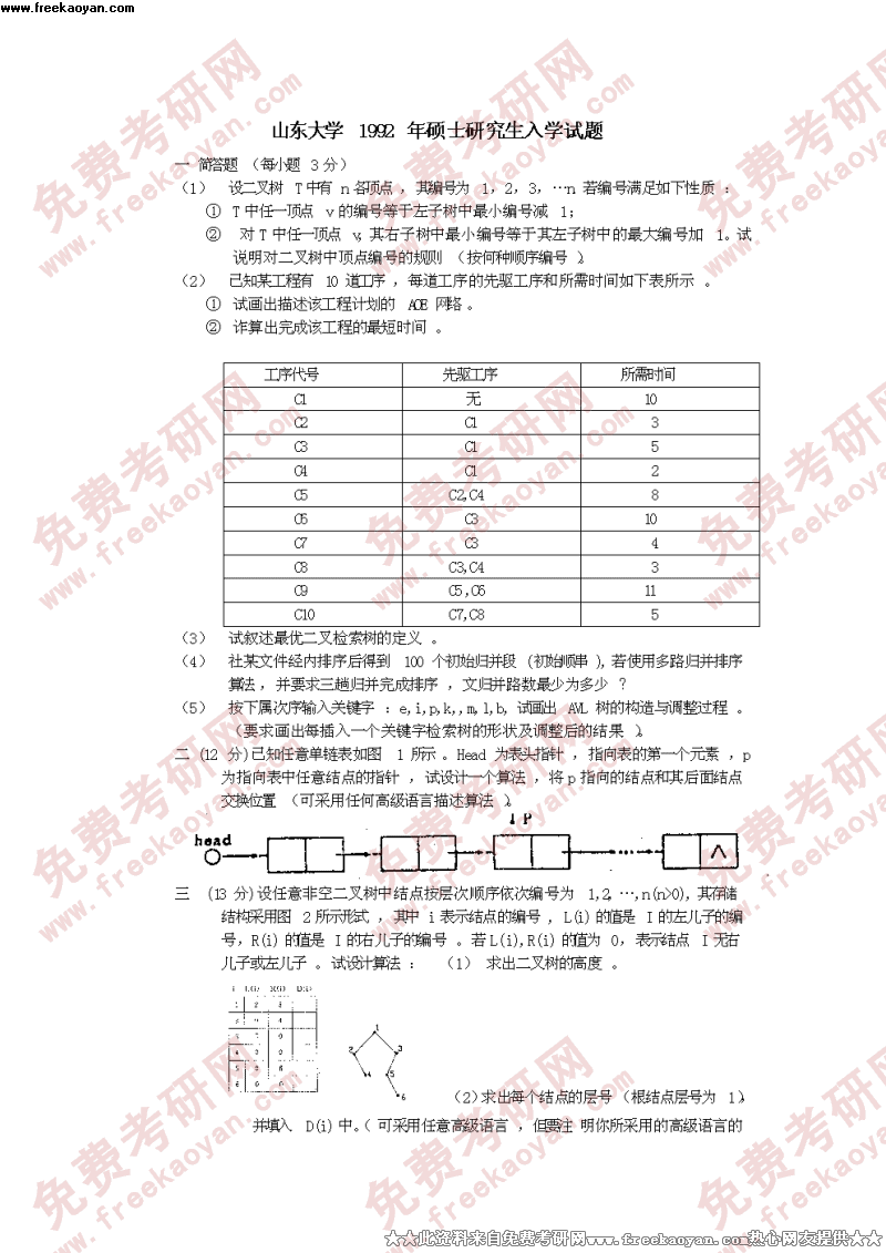 吉林大学2003年硕士研究生入学考试c语言程序设计答案