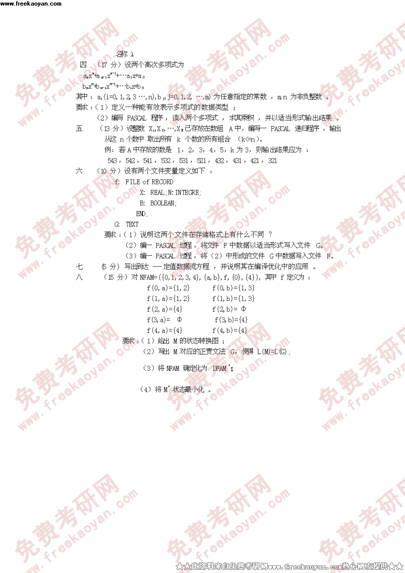 吉林大学2002年硕士研究生入学考试编译原理b1附答案
