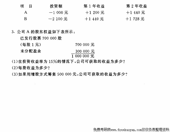 上海财经大学1995年硕士研究生入学考试财务学原理与西方公司原理