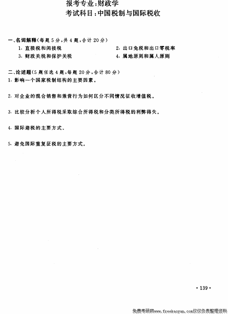 上海财经大学1996年硕士研究生入学考试中国税制与国际税收