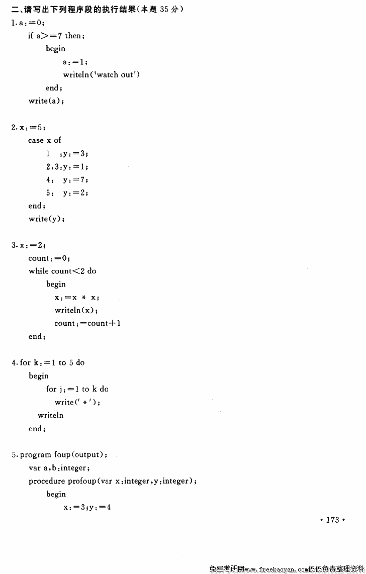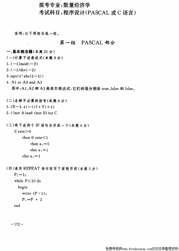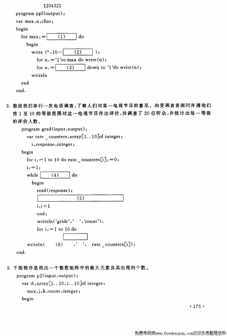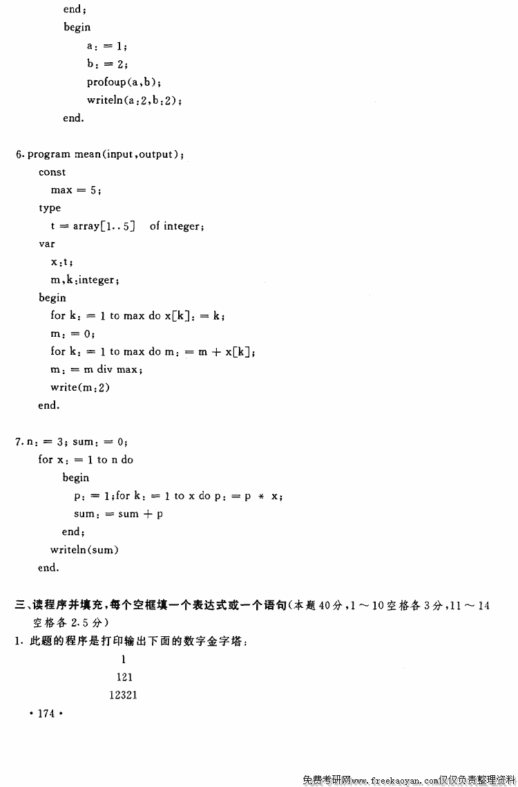 上海财经大学1996年硕士研究生入学考试程序设计(PASCAL或C语言)