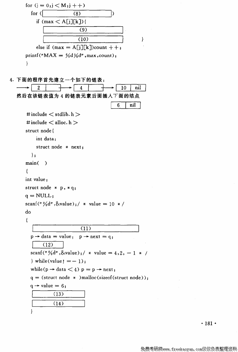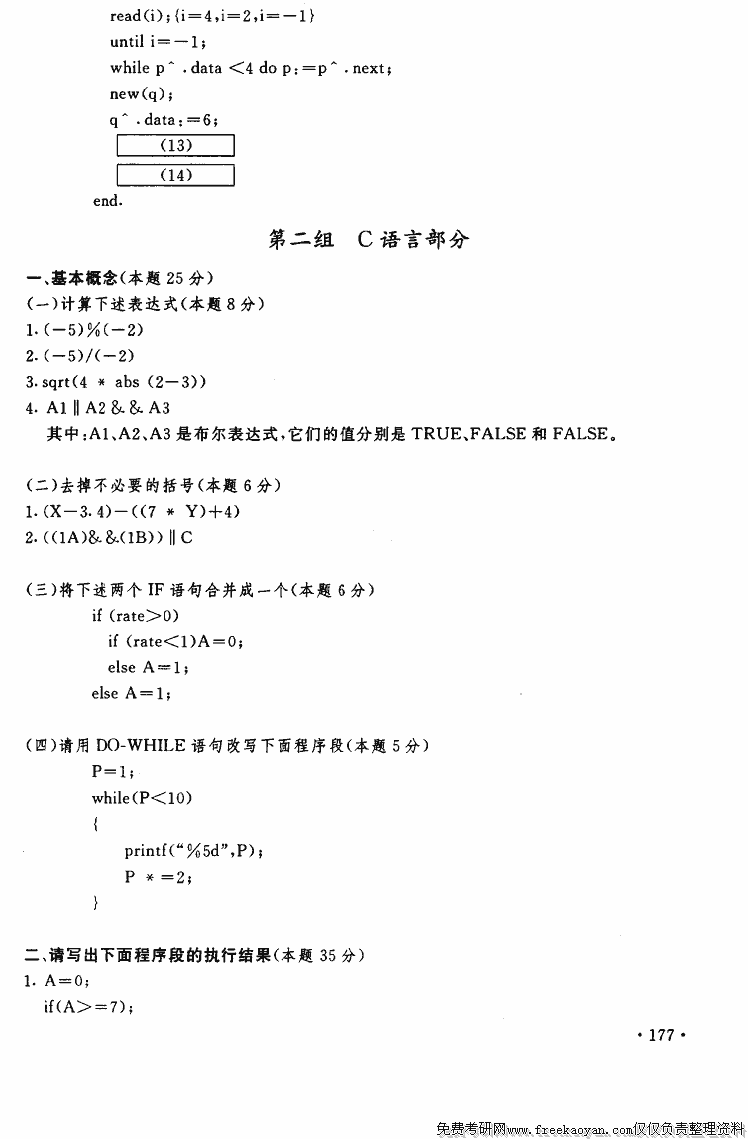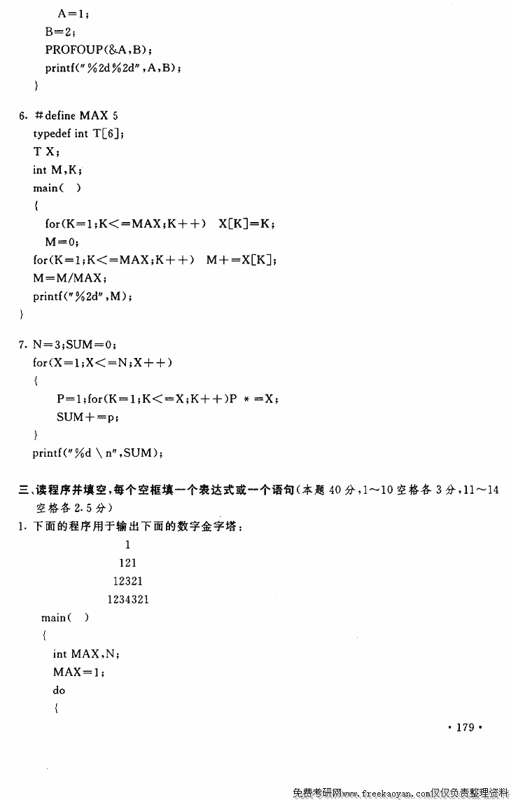 同济大学2005年硕士研究生入学考试数据结构和C语言考试