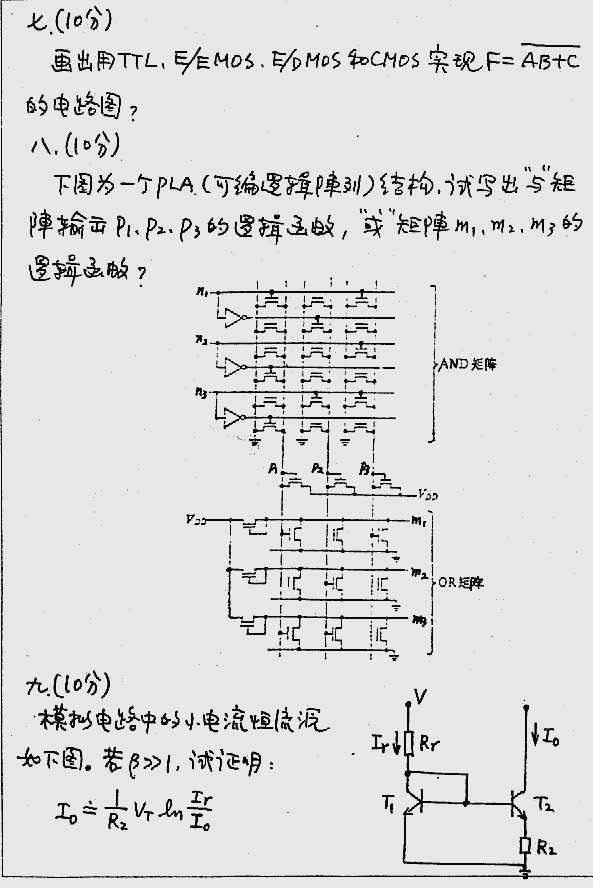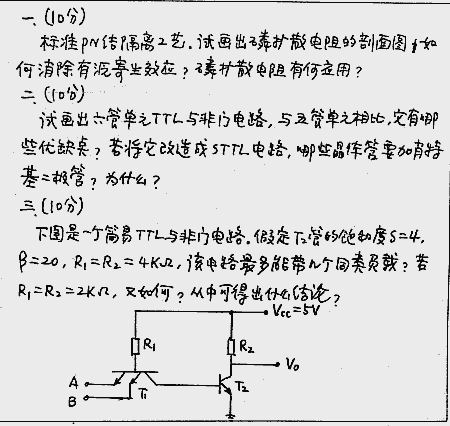 西安电子科技大学2000年硕士研究生入学考试半导体集成电路