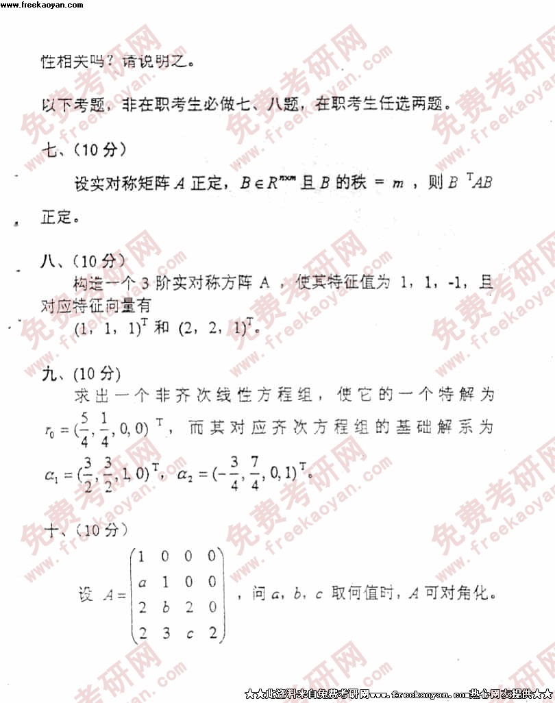 电子科技大学2001年硕士研究生入学考试线性代数试题