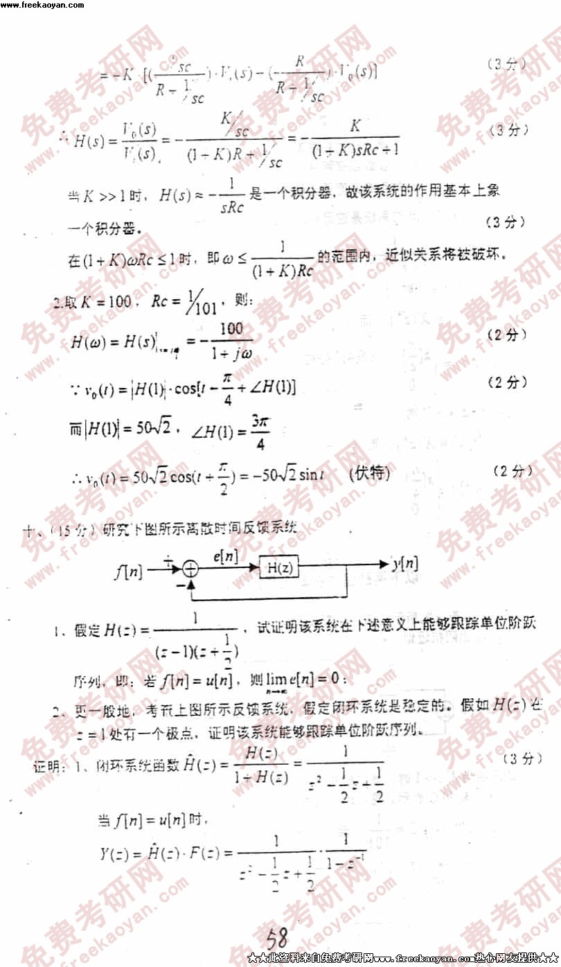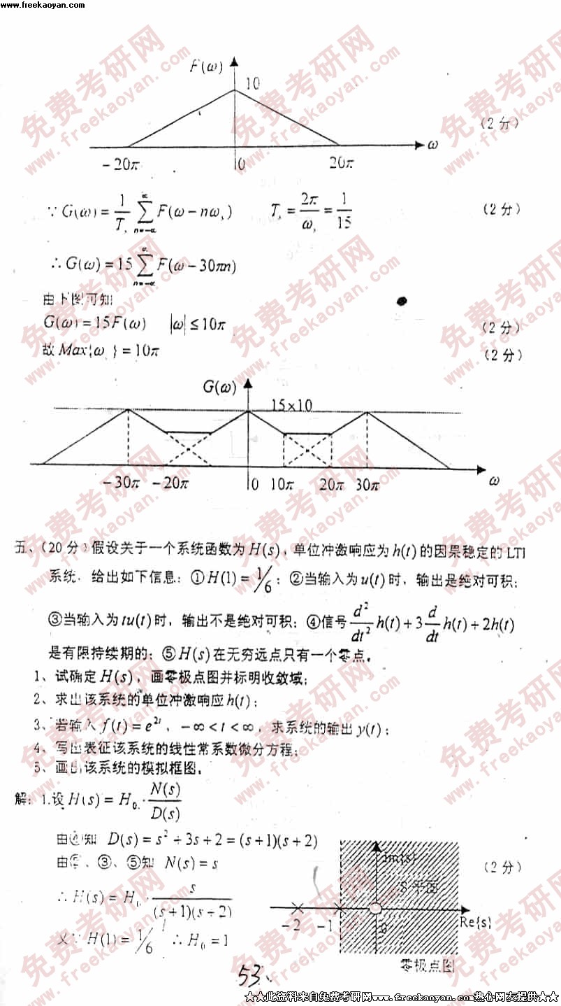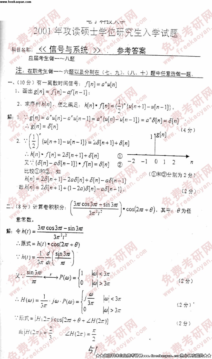 电子科技大学2001年硕士研究生入学考试信号与系统试题及答案