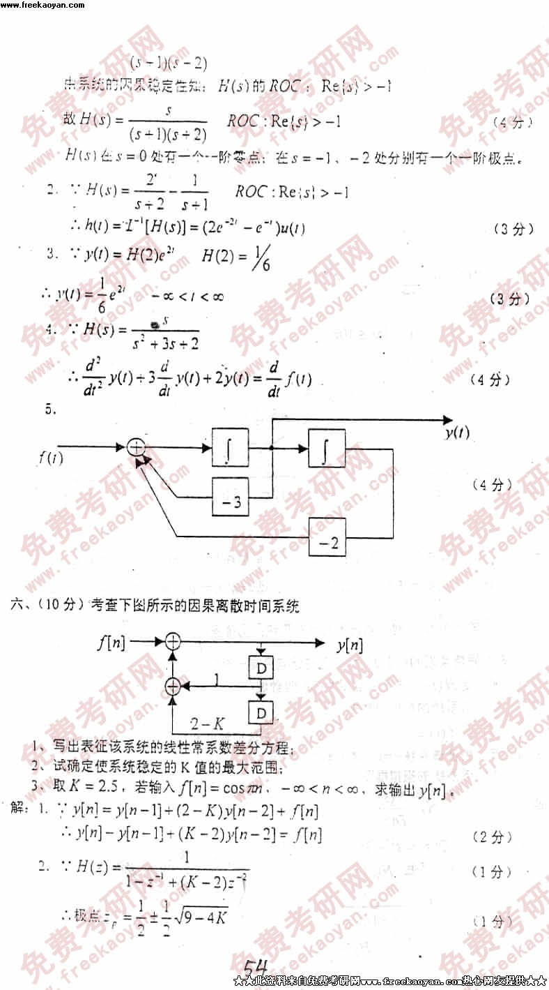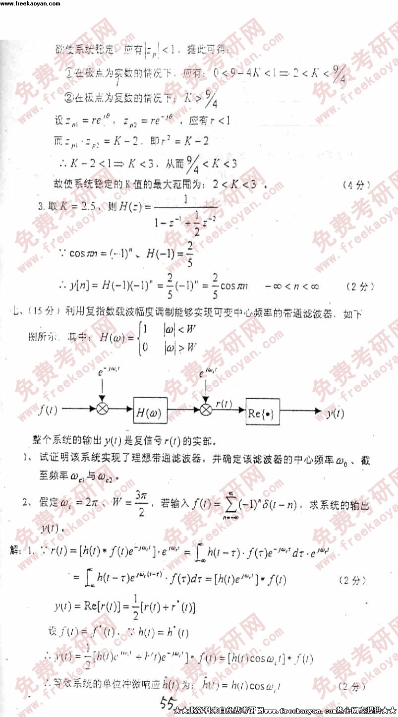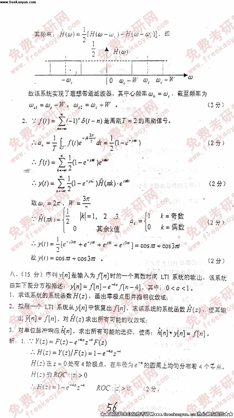 电子科技大学2001年硕士研究生入学考试信号与系统A卷答案