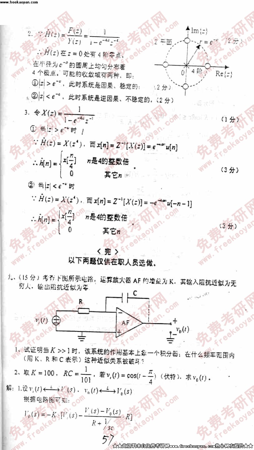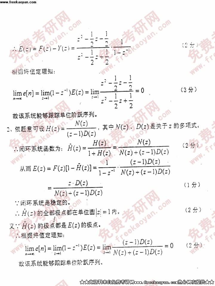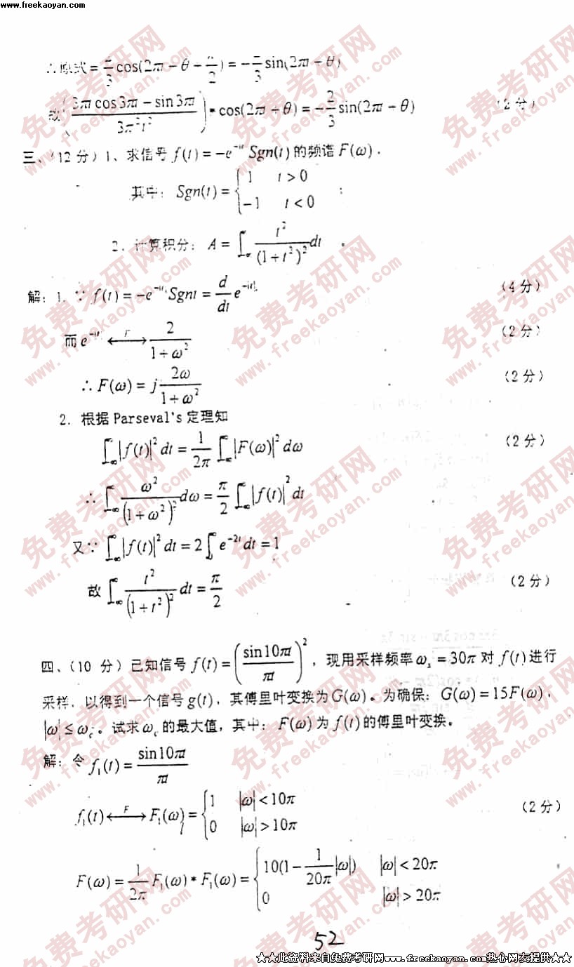 电子科技大学2001年硕士研究生入学考试信号与系统A卷答案
