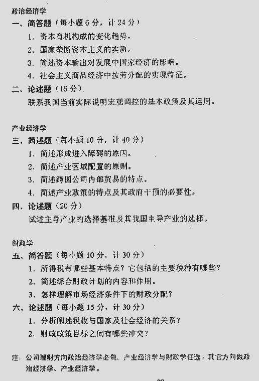 西南财经大学1999年硕士研究生入学考试综合考试(政治经济学、产业经济学)