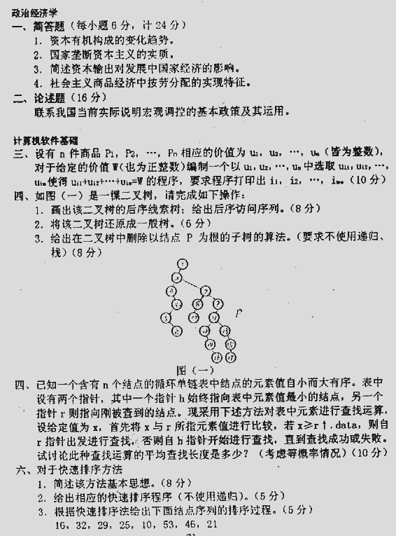 西南财经大学1999年硕士研究生入学考试综合考试(政治经济学、计算机软件基础程序设计、数据库)